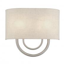 2 Light Brushed Nickel ADA Sconce with Hand Crafted Off-White Fabric Shade