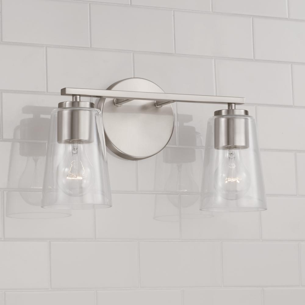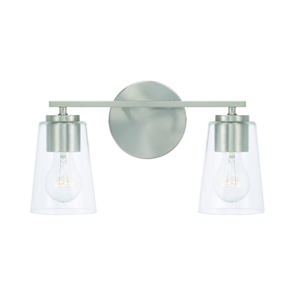 14.5"W x 8.25"H 2-Light Vanity in Brushed Nickel with Clear Glass
