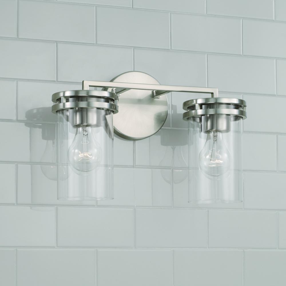 14.25"W x 9.75"H 2-Light Vanity in Brushed Nickel with Clear Glass