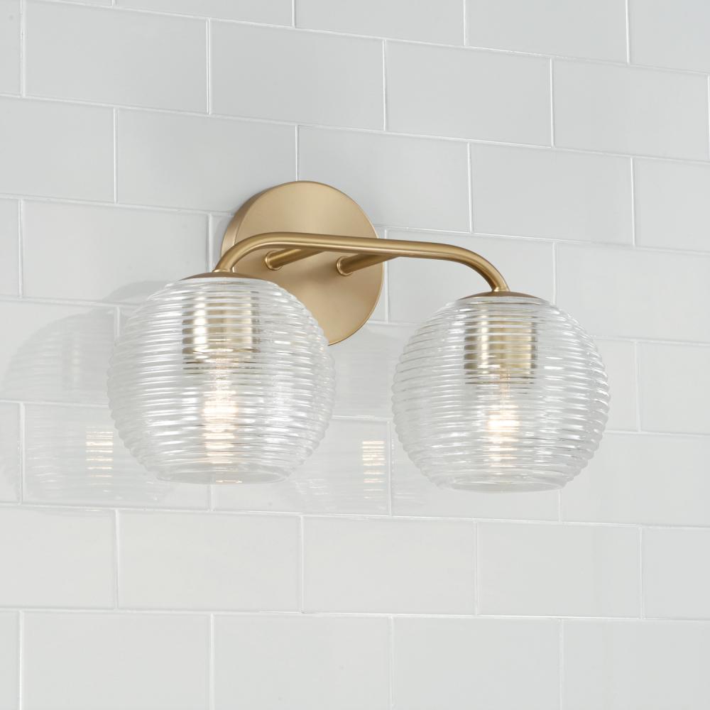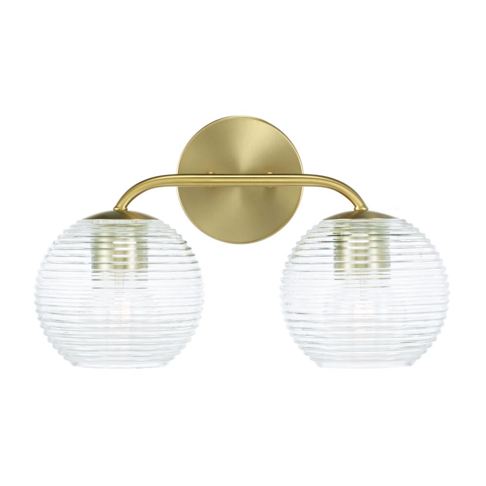 15.5"W x 9.5"H 2-Light Vanity in Matte Brass with Clear Ribbed Glass