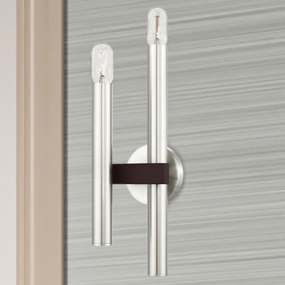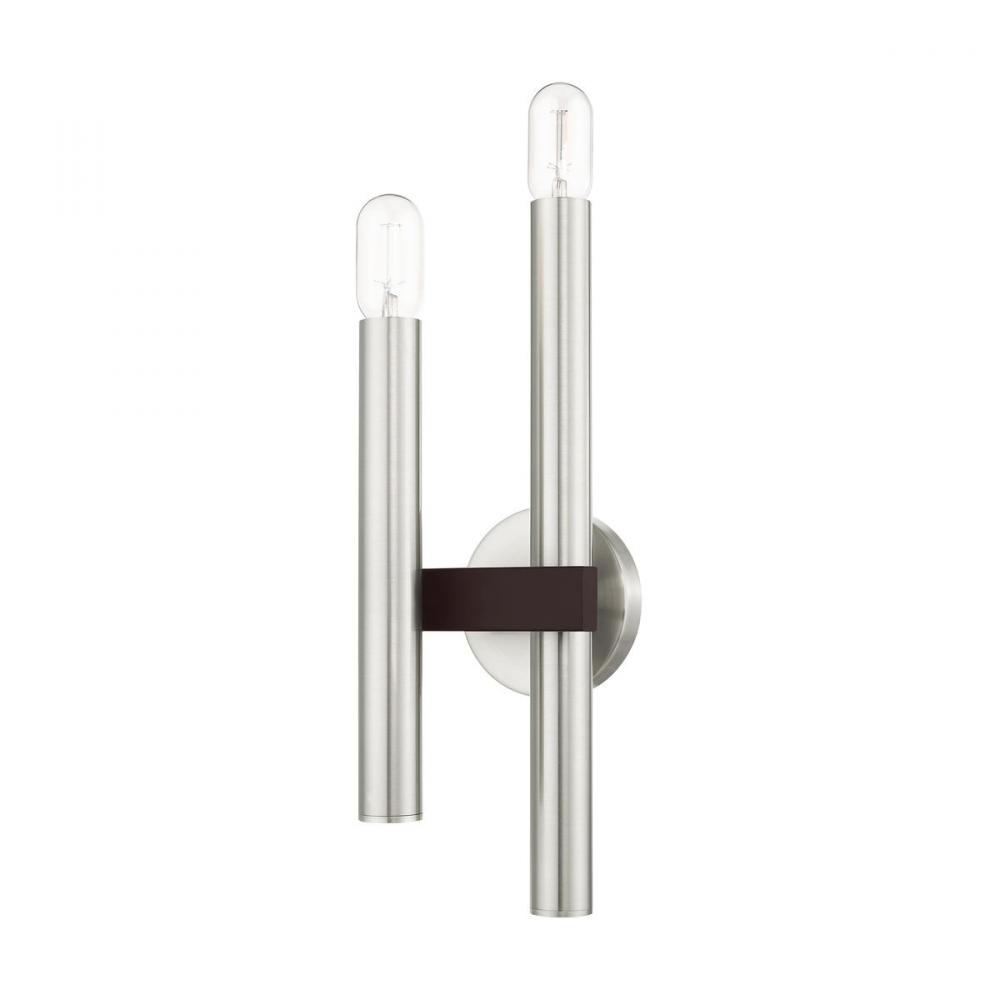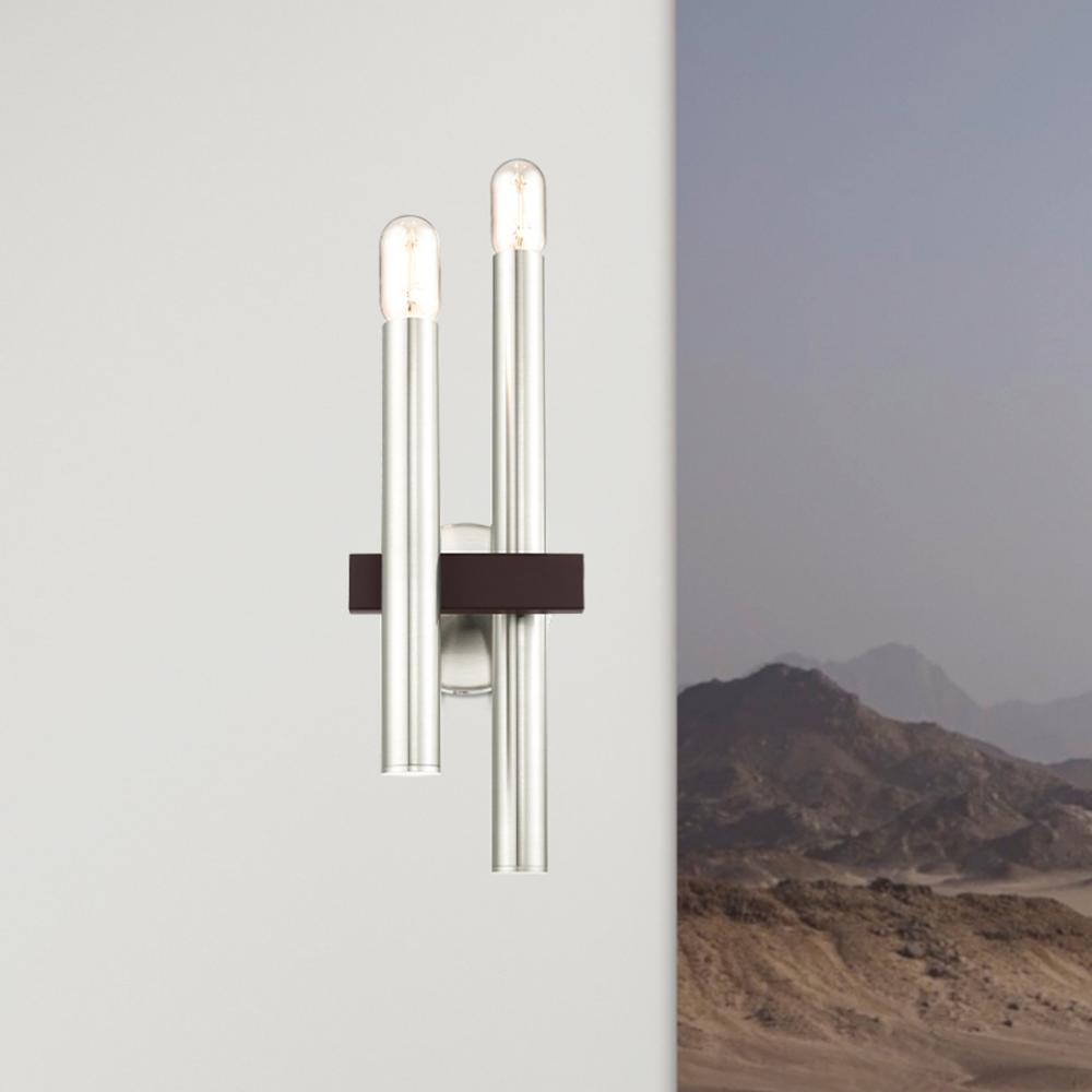 2 Lt Brushed Nickel & Bronze Wall Sconce