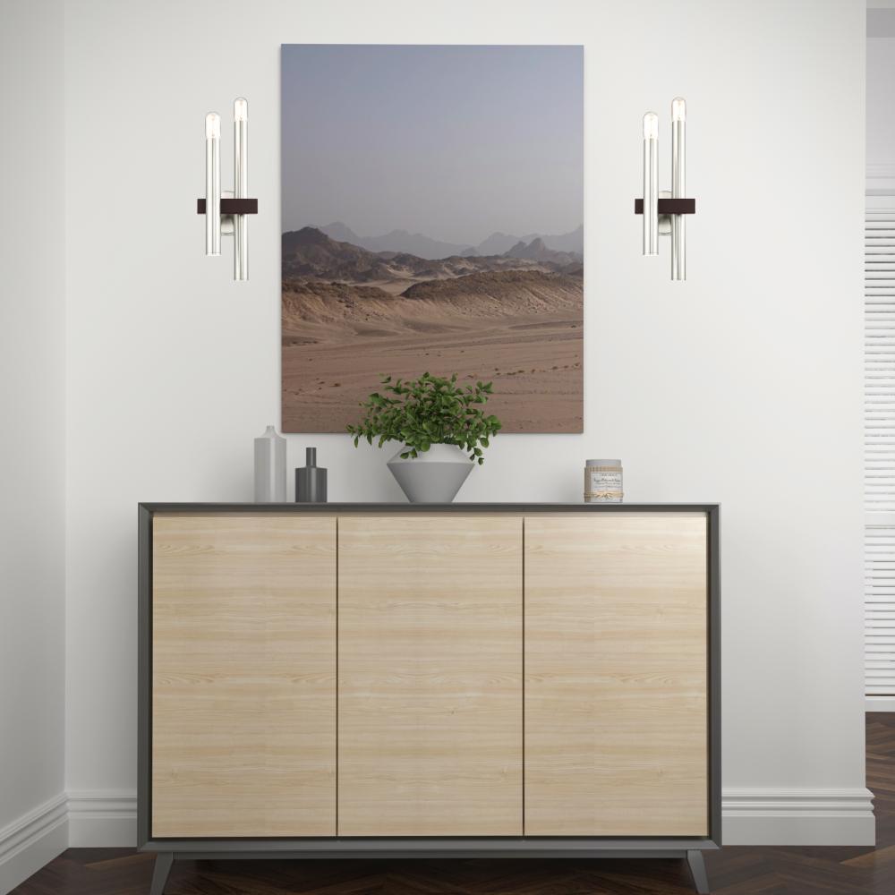2 Light Brushed Nickel & Bronze Wall Sconce