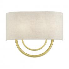 2 Light Soft Gold ADA Sconce with Hand Crafted Oatmeal Fabric Shade with White Fabric Inside