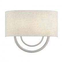 2 Light Brushed Nickel ADA Sconce with Hand Crafted Off-White Fabric Shade