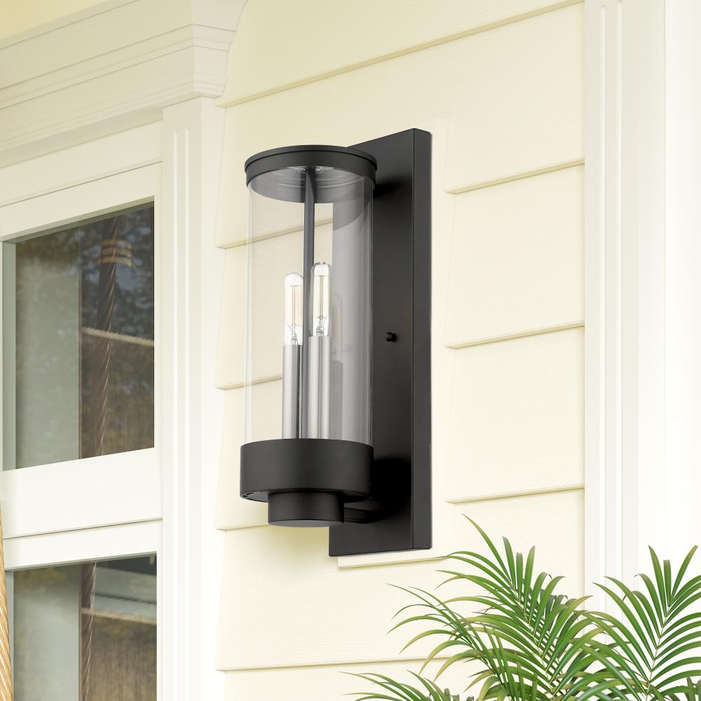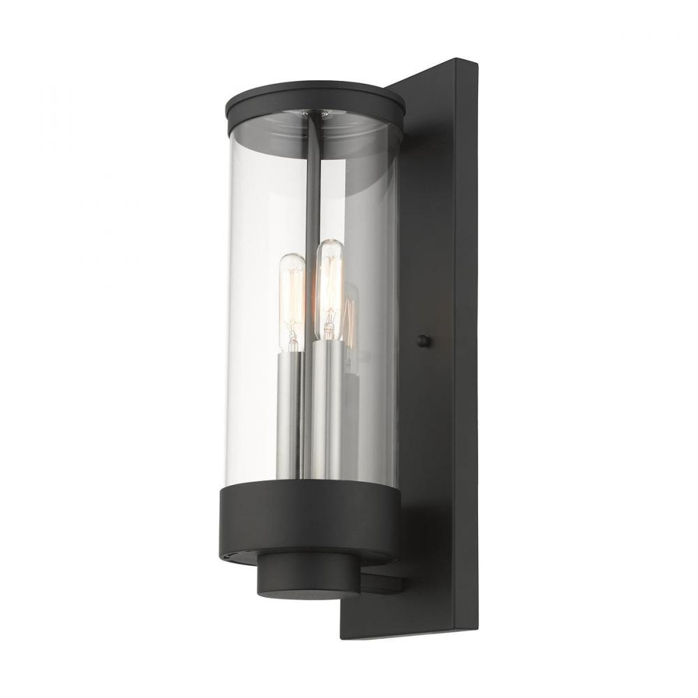 3 Lt Textured Black Outdoor Wall Lantern