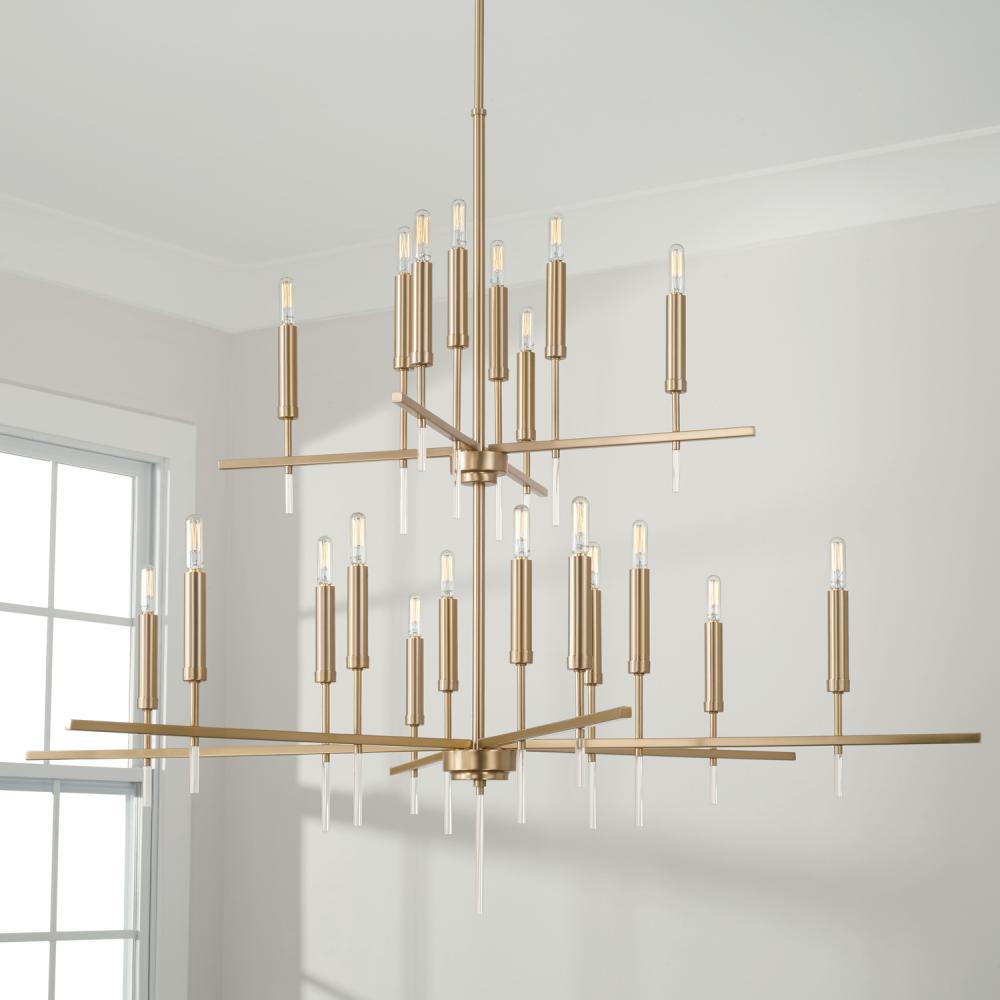 48"W x 39.5"H 20-Light Two-Tier Chandelier in Matte Brass with Acrylic Finial Accents