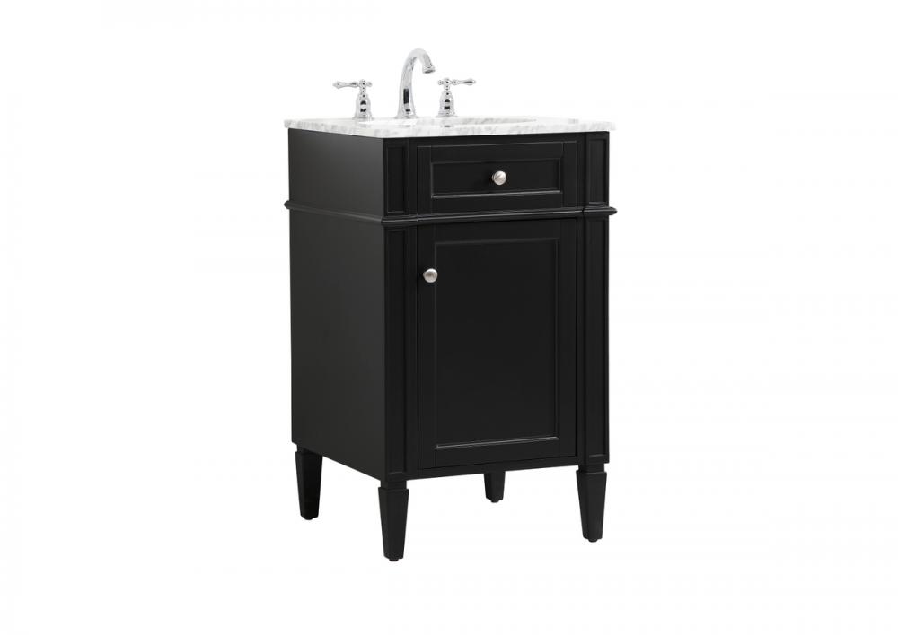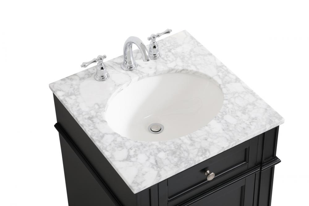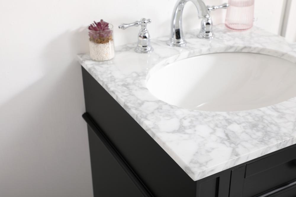Comes with an undermount porcelain sink and a carrara white marble countertop