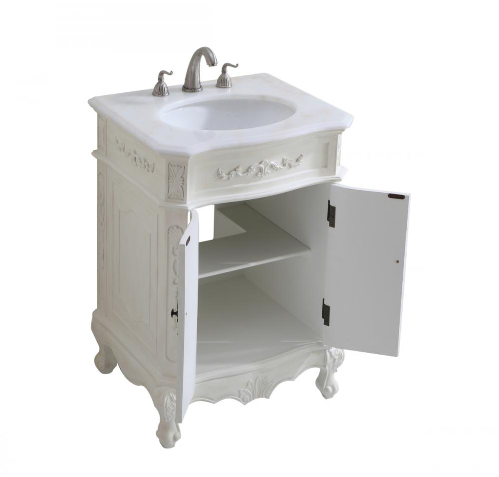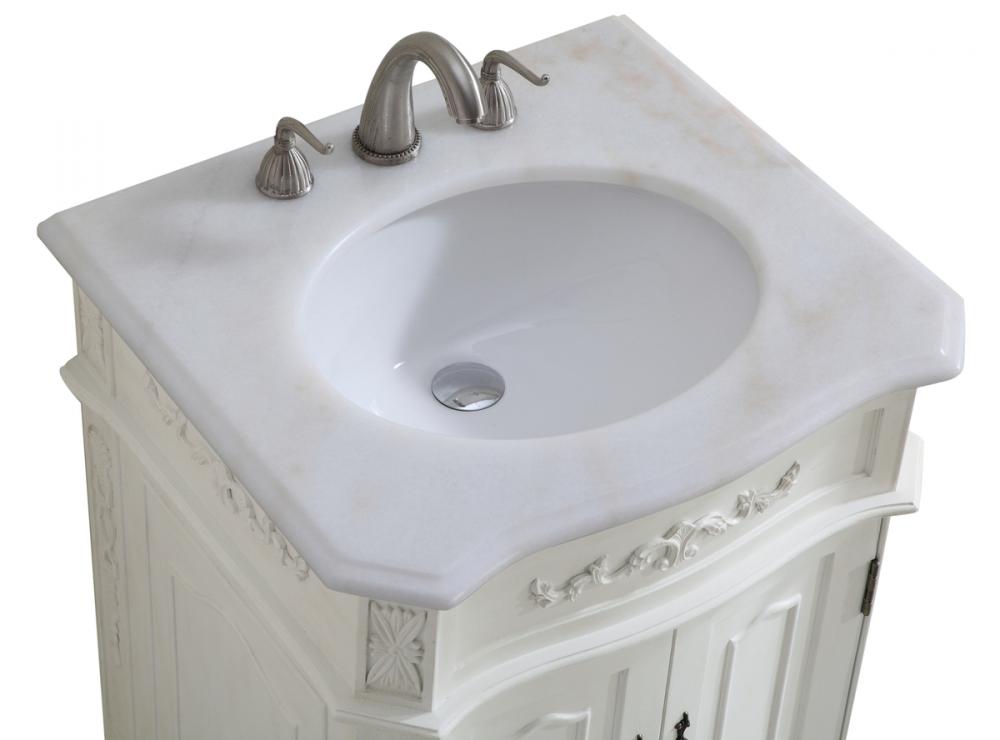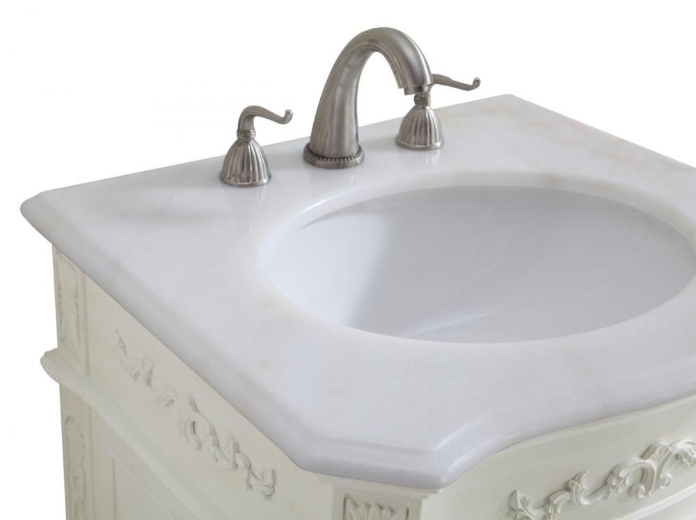 The Danville collection is finely hand crafted vanities. The vanity is a Single sink marbled top cabinet with a modest storage area underneath. Expert workmanship is evident in the detailed etchings from top to bottom. Available in your choice of antique white, antique beige, white or brown. Hardware not included.