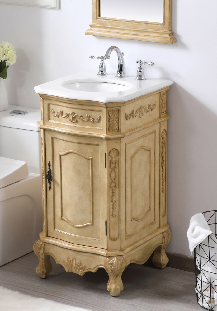24 inch Single Bathroom vanity in Antique Beige with ivory white engineered marble