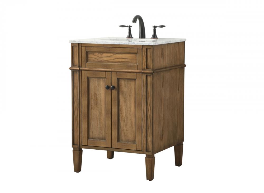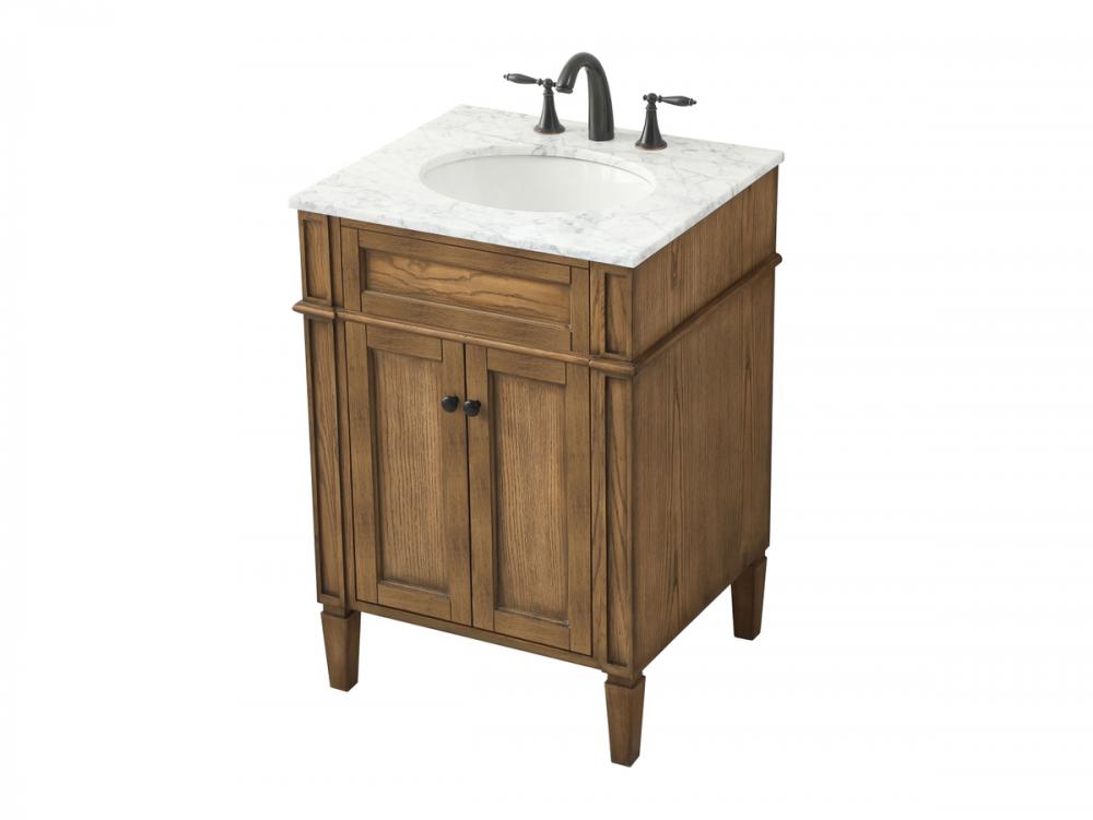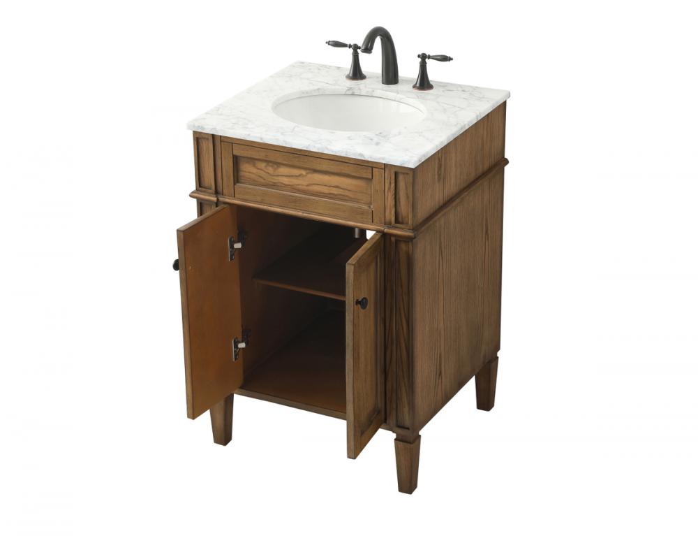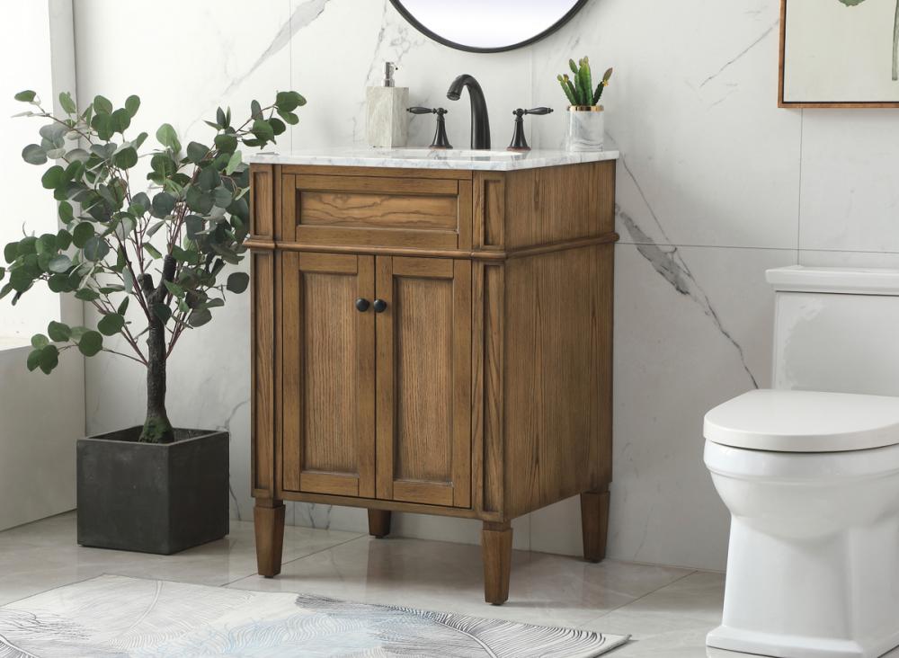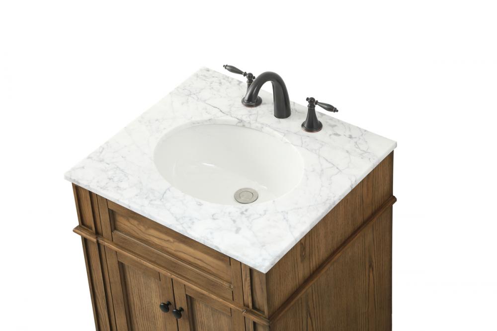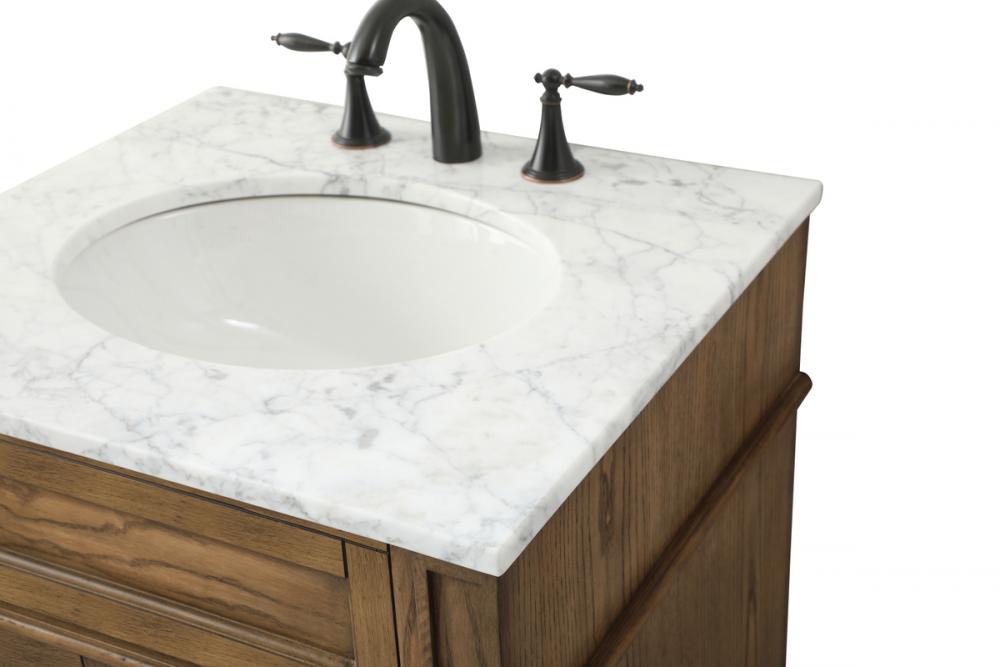 Comes with an undermount porcelain sink and a carrara white marble countertop