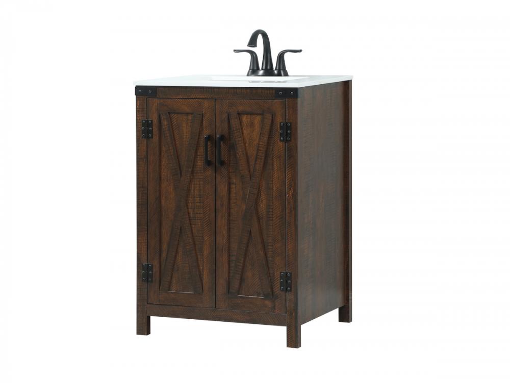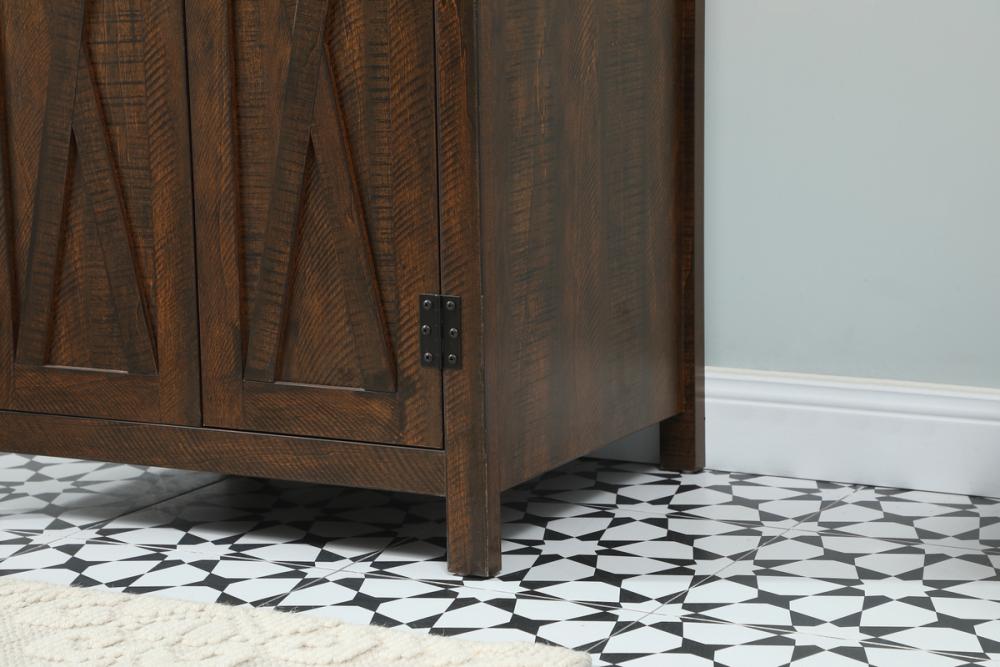 Reminiscent of barn doors, the 2 door cabinet adds both stylistic charm and function with its plethora of storage options for all your bathroom essentials. Whether for your bathroom or the guests', everyone will marvel at its classic look for traditional and farmhouse aesthetics. A slab of engineered marble rounds out the piece up top, as well as the porcelain under mount sink and predrilled faucet holes. This vanity arrives fully assembled.