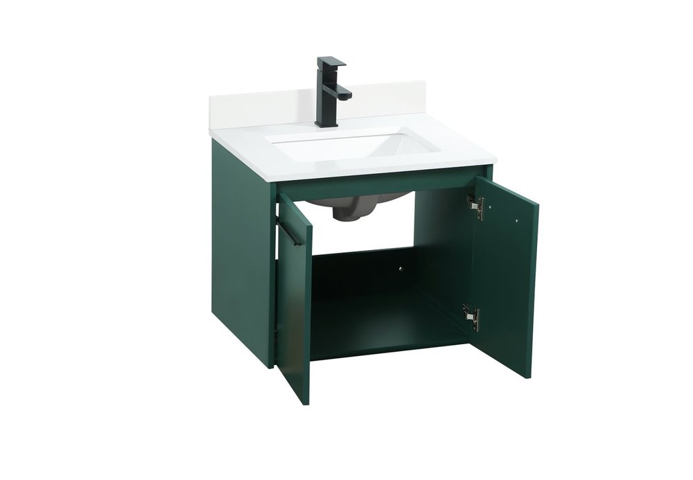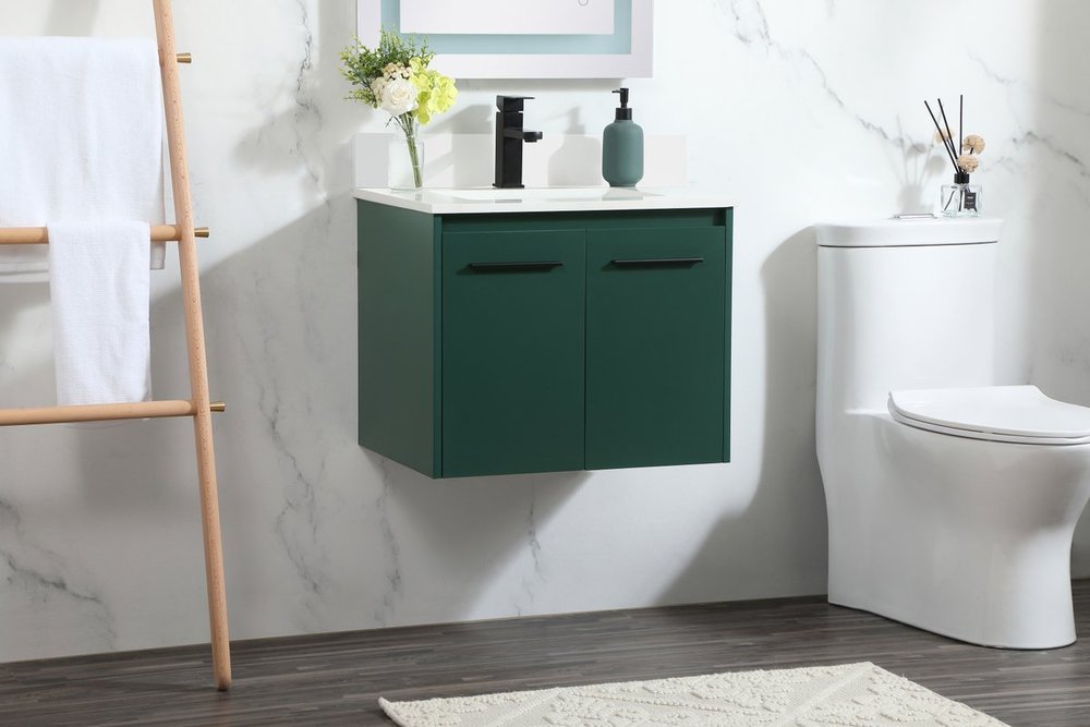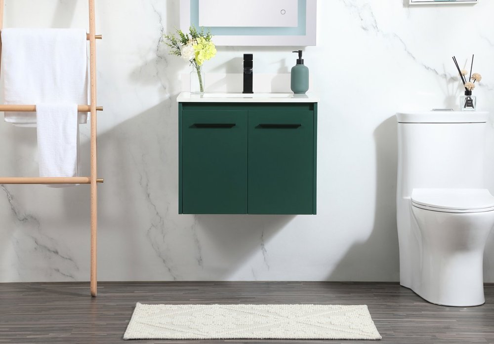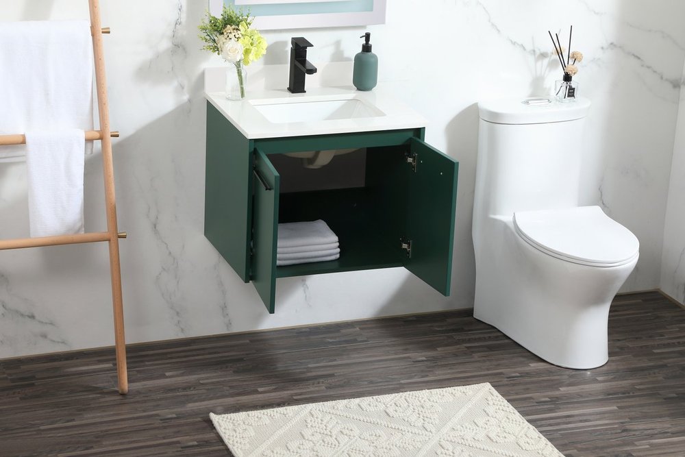 Save space and make your bathroom appear bigger with this floating vanity that comes in several finishes. Its minimal design will have you in awe, while its clean lines will leave your room feeling fresh and uncluttered. The Single cabinet opens with soft closing doors that allows for storage to place extra towels or various other essentials. Its low maintenance and durable engineered marble top will surely last through many washes. Comes with a matching backsplash to help protect your bathroom wall.