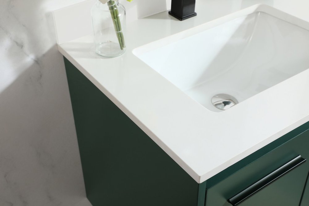 Features a low maintenance engineered marble countertop