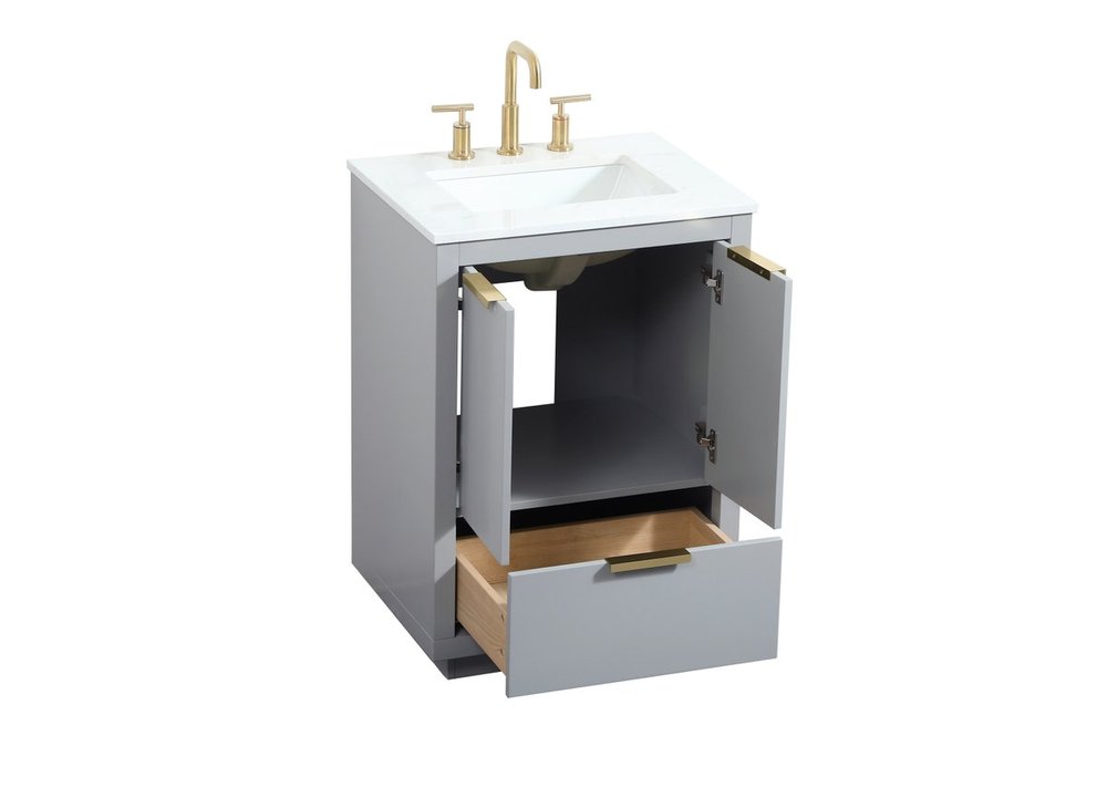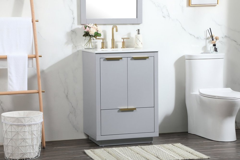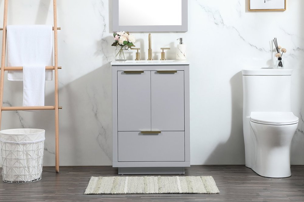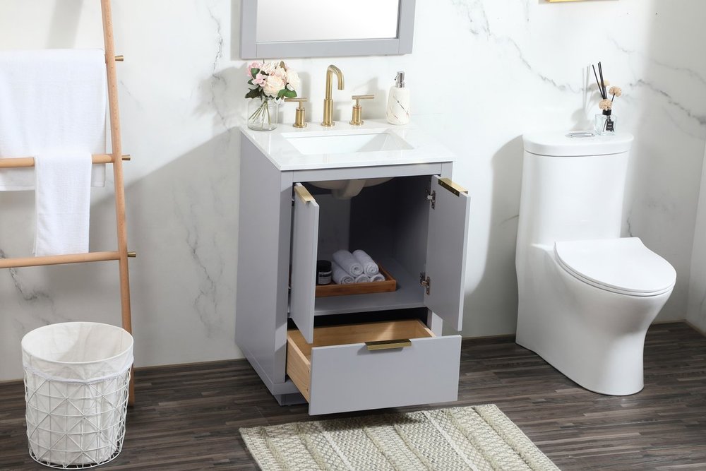 The Blake collection vanity cabinet will be a modern furniture statement piece in your bathroom. Our color combination creates a calming atmosphere in the room. The gold handles bring a vibrant touch to balance the vanity. With the simplistic clean lines, the cabinet catches eyes with its beautiful smooth surface. Open the cabinet doors to store what you desire and make use of the spacious area. Gently close the door and the soft closing glides will quietly closes the door. To top it off, the calacatta engineered marble adds a luxury and modern finish to the durable stonetop.