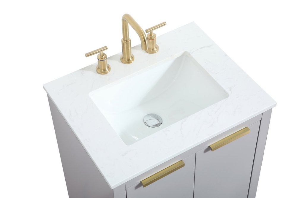 Comes with an undermount porcelain sink and a durable calacatta engineered marble stone top