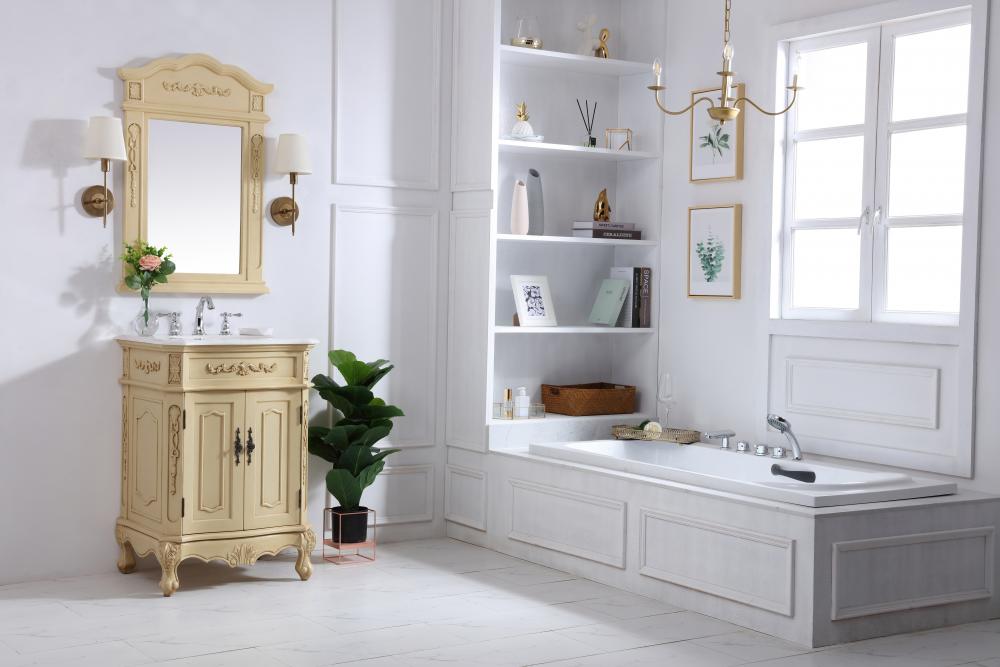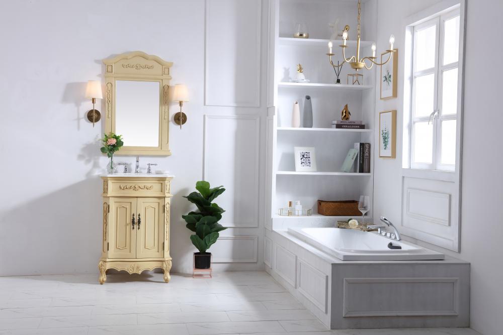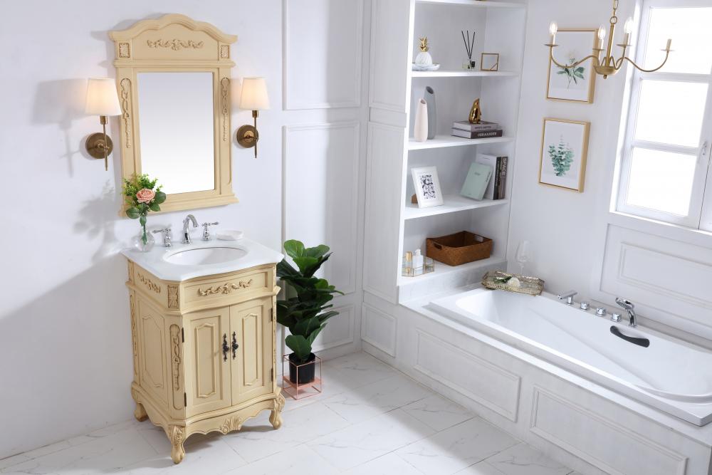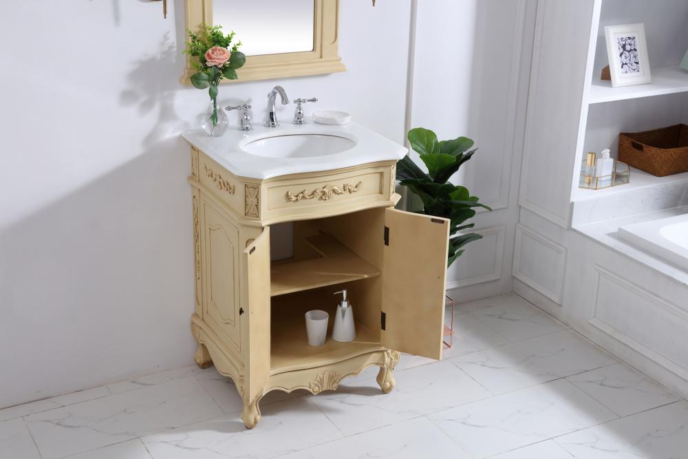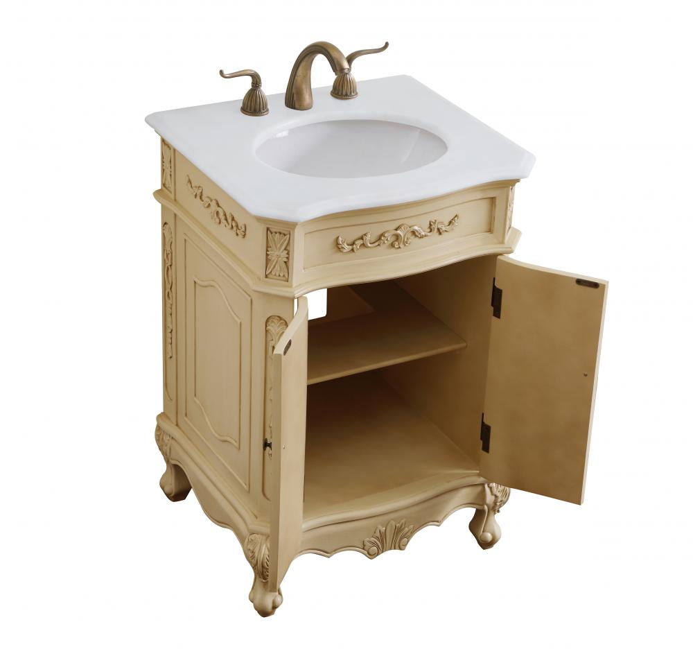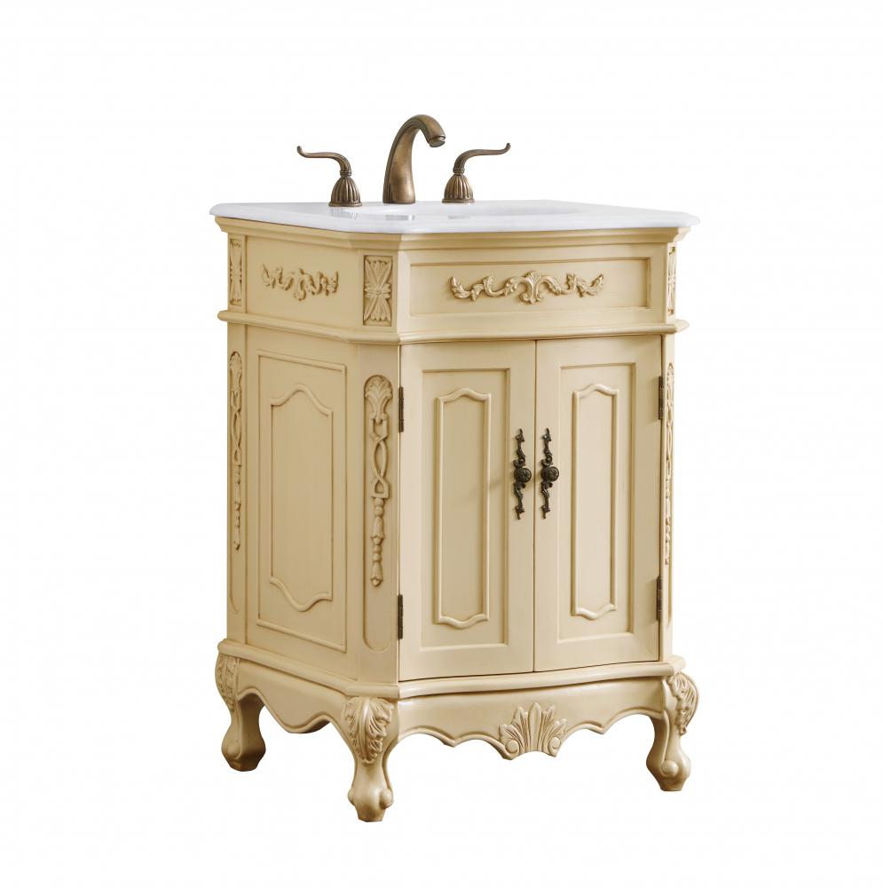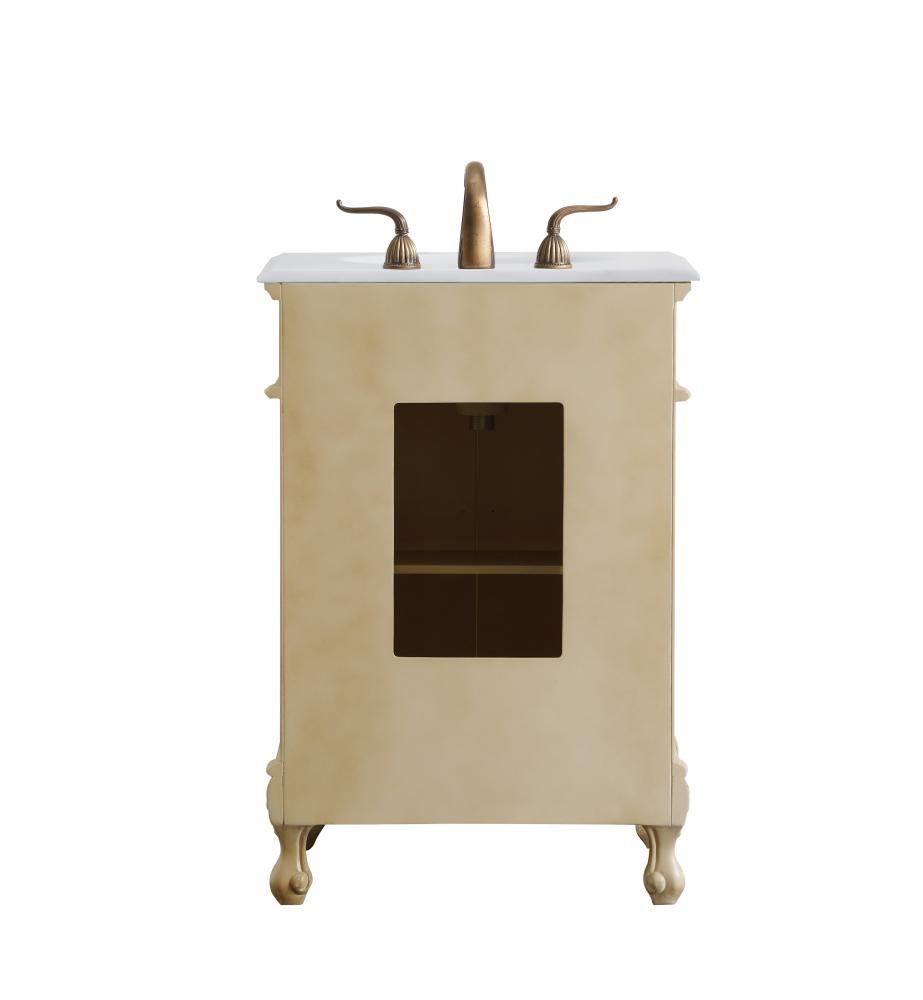 24 inch Single Bathroom vanity in light antique beige with ivory white engineered marble