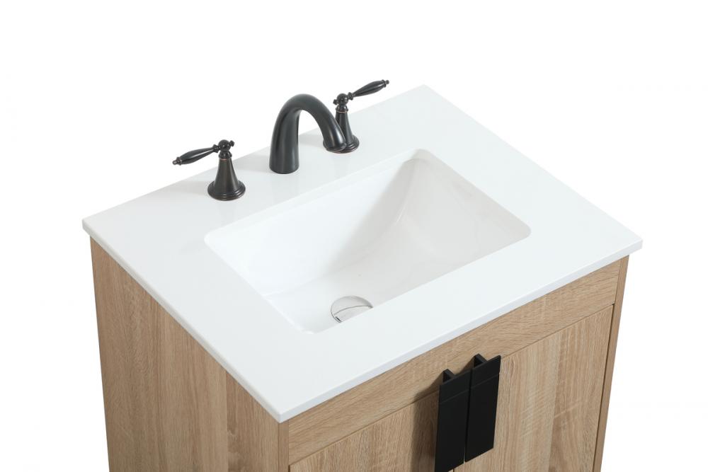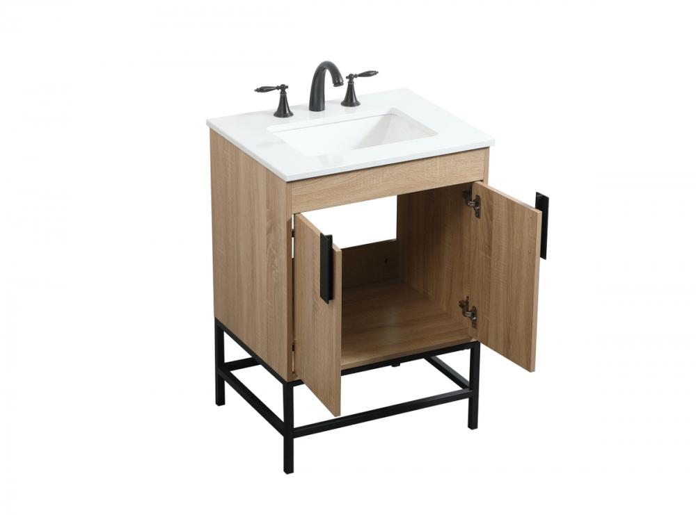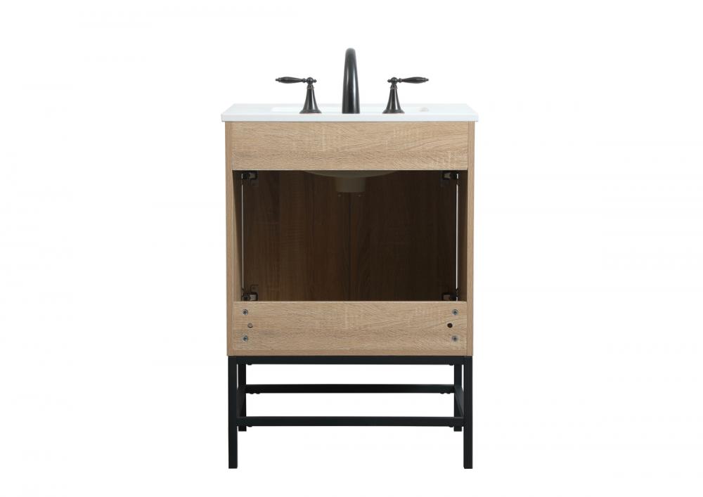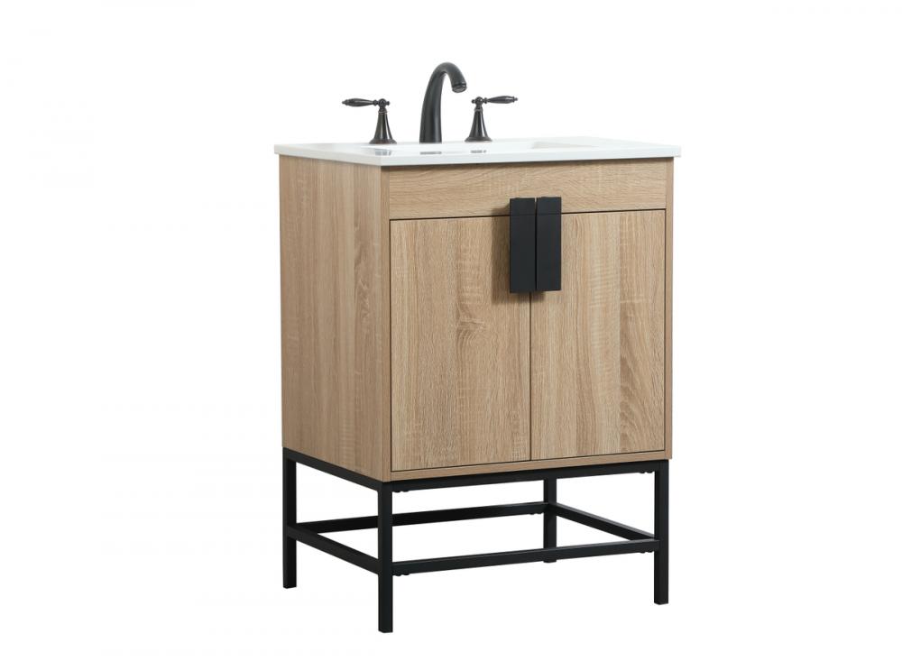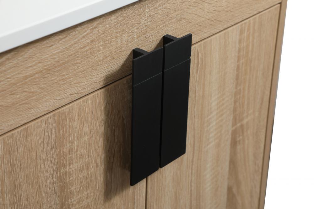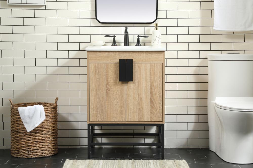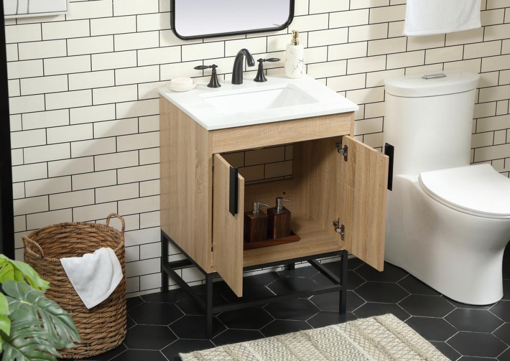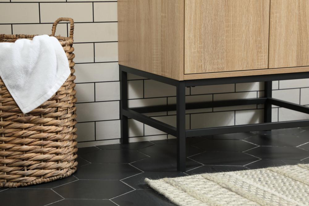 This vanity is a sleek-looking piece of bathroom furniture that is easy to incorporate into your design scheme. The cabinet features a smooth door panel with an oversized steel handle and soft close hinges provide ample room for accessories. Constructed of engineered wood, the powder-coated metal rod legs are an urban industrial look that we love. Minor assembly of the metal legs needed to get this vanity up and running.