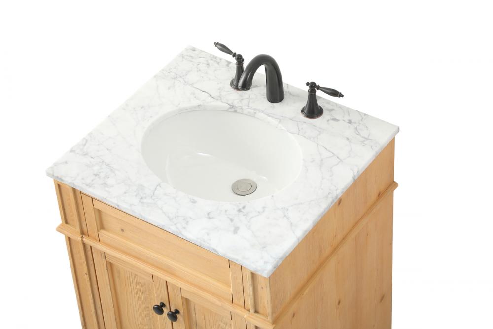 Comes with an undermount porcelain sink and a carrara white marble countertop
