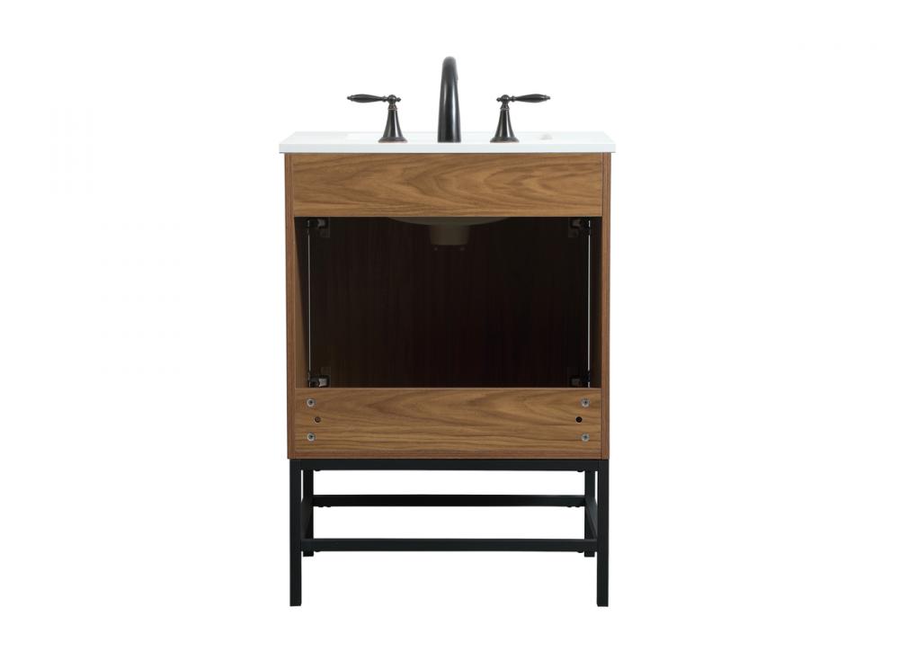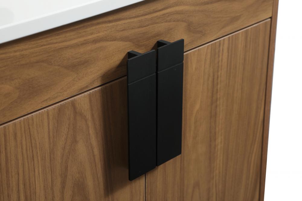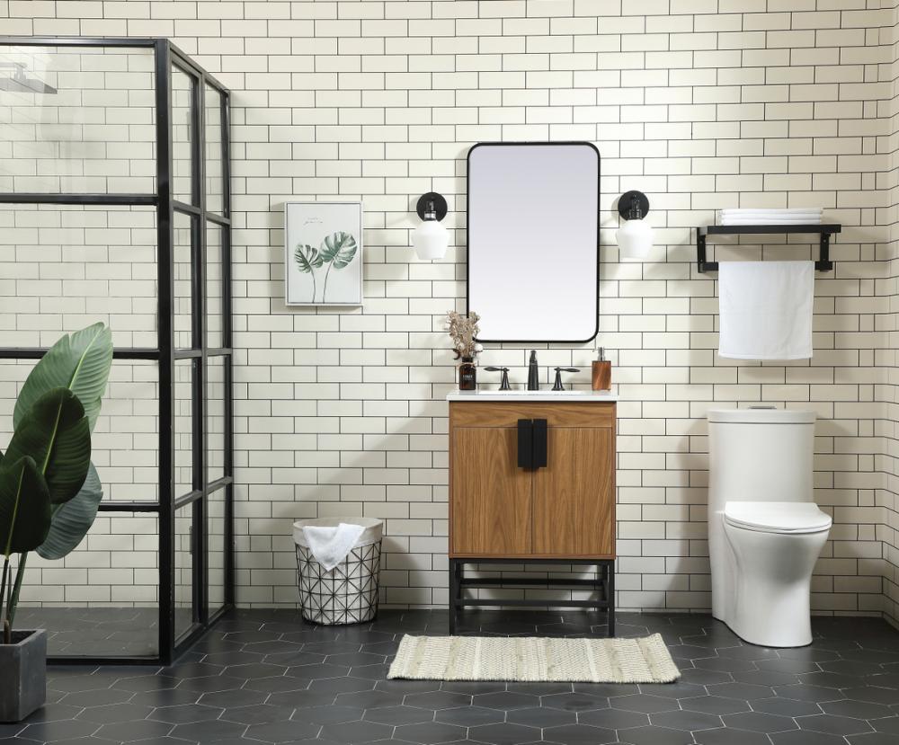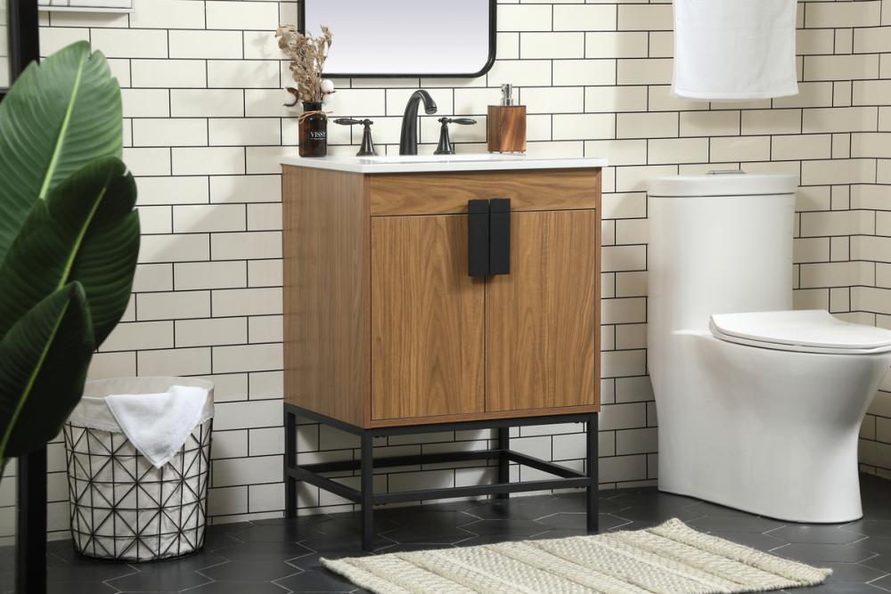 This vanity is a sleek-looking piece of bathroom furniture that is easy to incorporate into your design scheme. The cabinet features a smooth door panel with an oversized steel handle and soft close hinges provide ample room for accessories. Constructed of engineered wood, the powder-coated metal rod legs are an urban industrial look that we love. Minor assembly of the metal legs needed to get this vanity up and running.