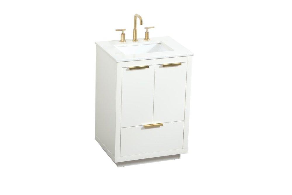 Comes with an undermount porcelain sink and a durable calacatta engineered marble stone top