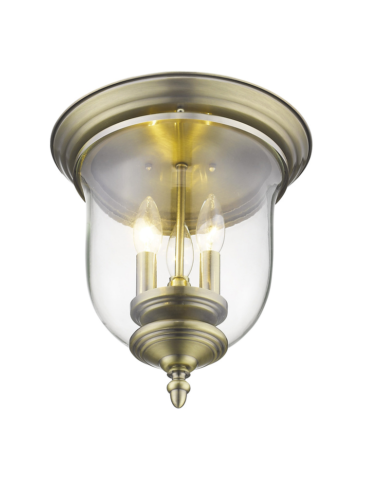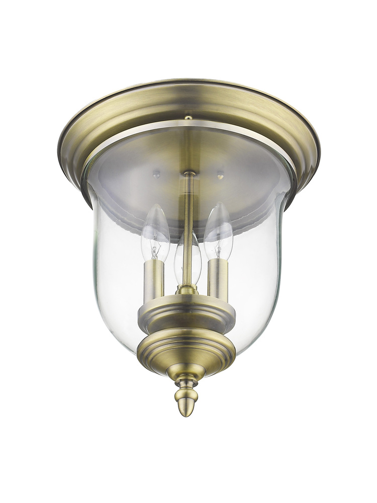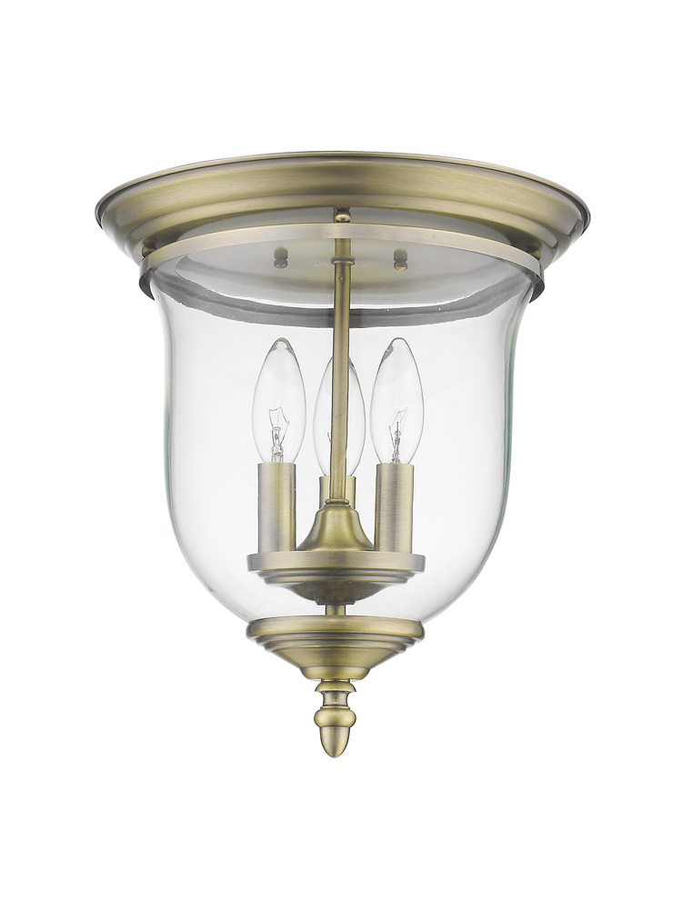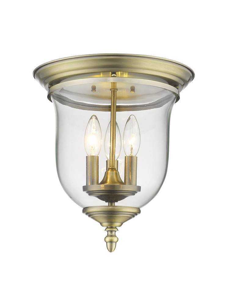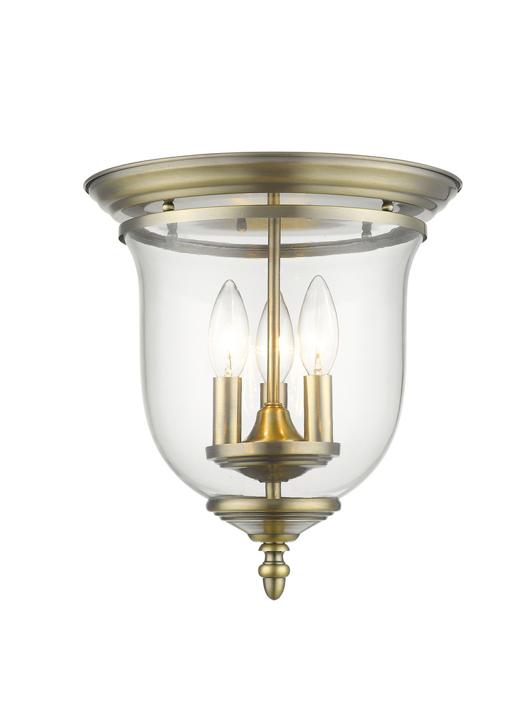 The Legacy Collection Offers A Chic Update To Traditional Style Lighting. This Flushmount Light Design Comes In A Beautiful Antique Brass Finish With A Traditional Glass Bell Jar Adding Style.