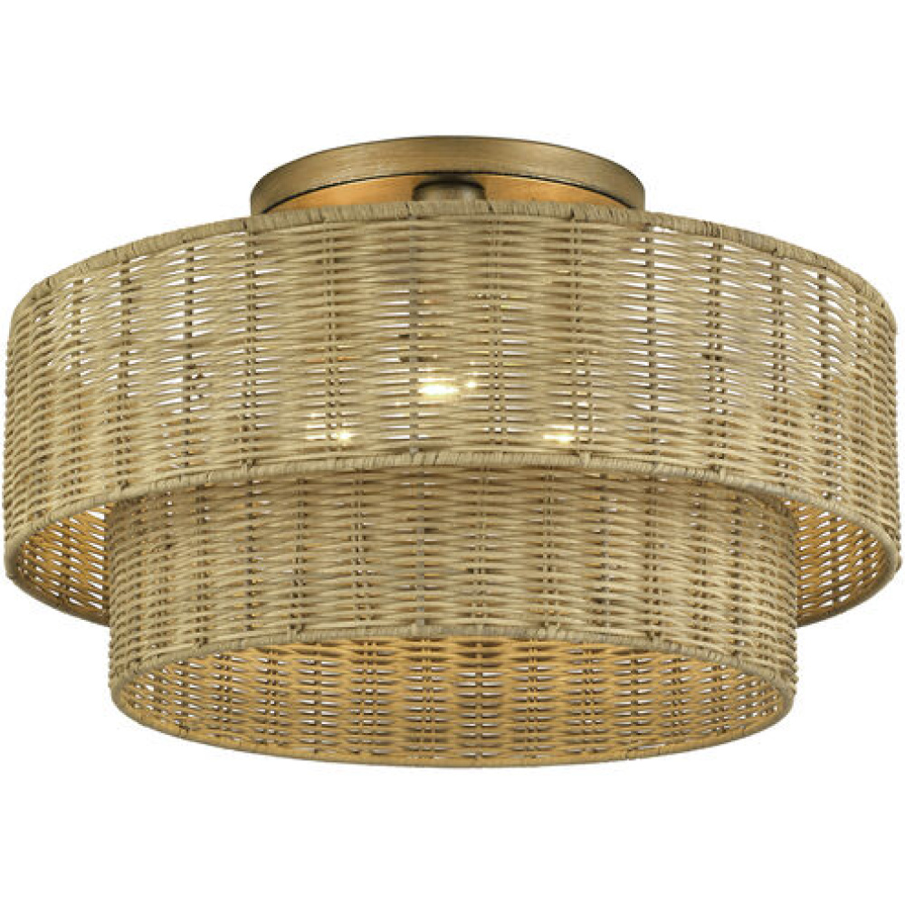 3 Light Antique Gold Leaf Large Semi-Flush