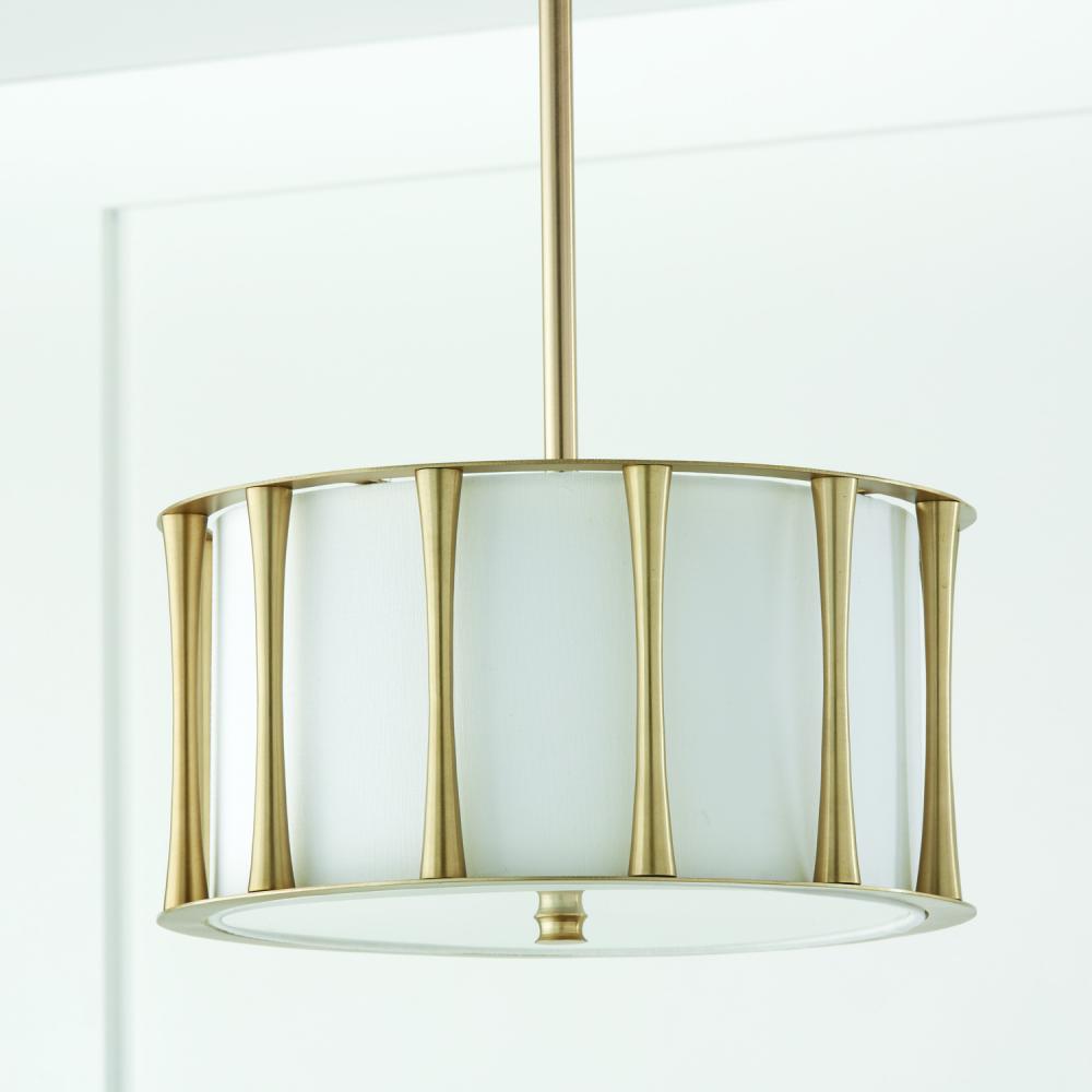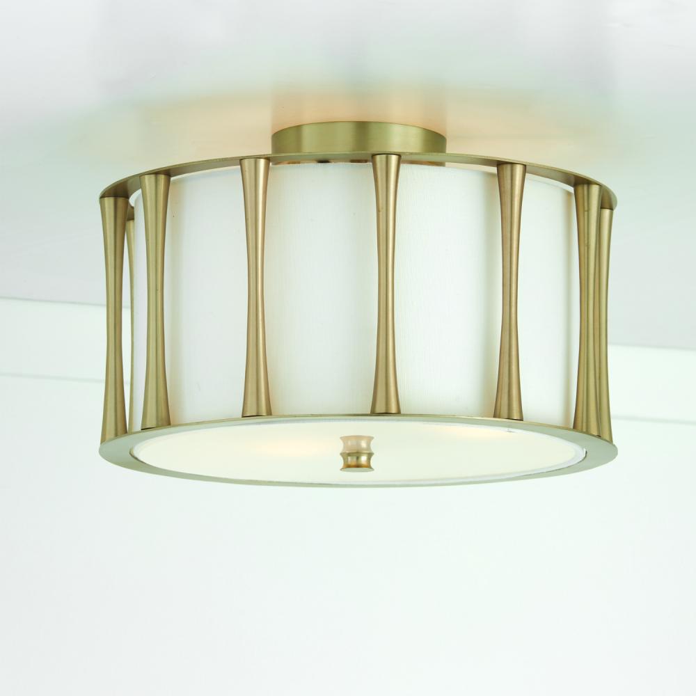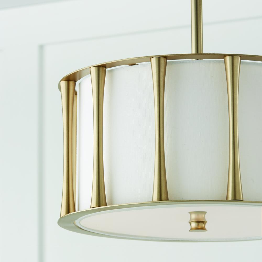 15"W x 9"H 3-Light Semi-Flush in Matte Brass with White Fabric Shade