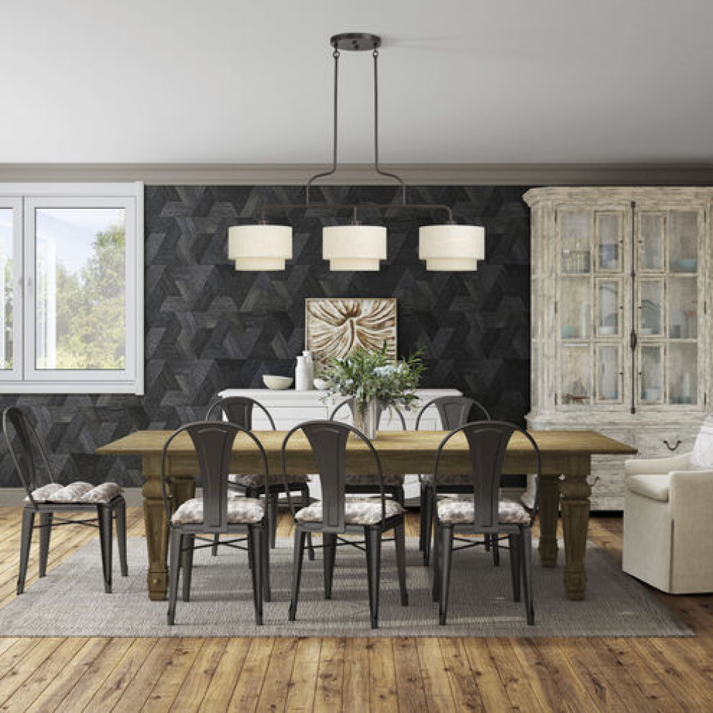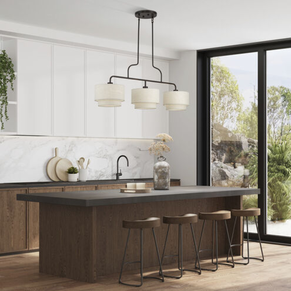 No room is too big or too small for the ambient, modern Manorwood lighting collection, given its extensive line-up of ceiling and wall light models in round and linear styles. Featuring minimalist metal frames (available in several mood-setting metallic finishes), the versatile Manorwood design is centered around handmade hardback shades concentrically stacked in a “wedding cake” style in up to 4 tiers.
