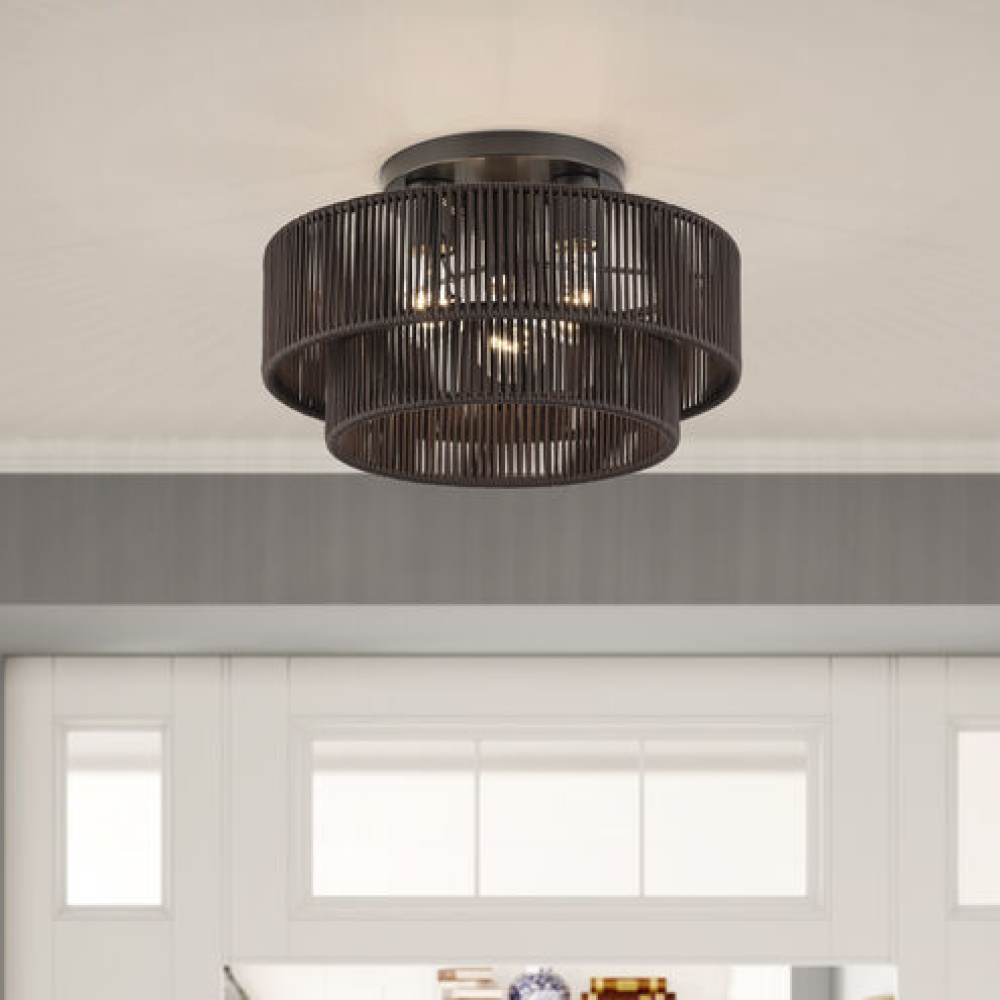 What a joy to come home to the calming, balanced and stylish Acordia lighting collection, with its semi-transparent texture and dynamic illumination! This midcentury modern lineup of elegant ceiling and wall lights features minimal metal frames with dimensional drum-shaped, tiered shades – masterfully handwoven with silky-smooth, highly-durable polyester rope, finished in noble, natural and atmospheric colors.