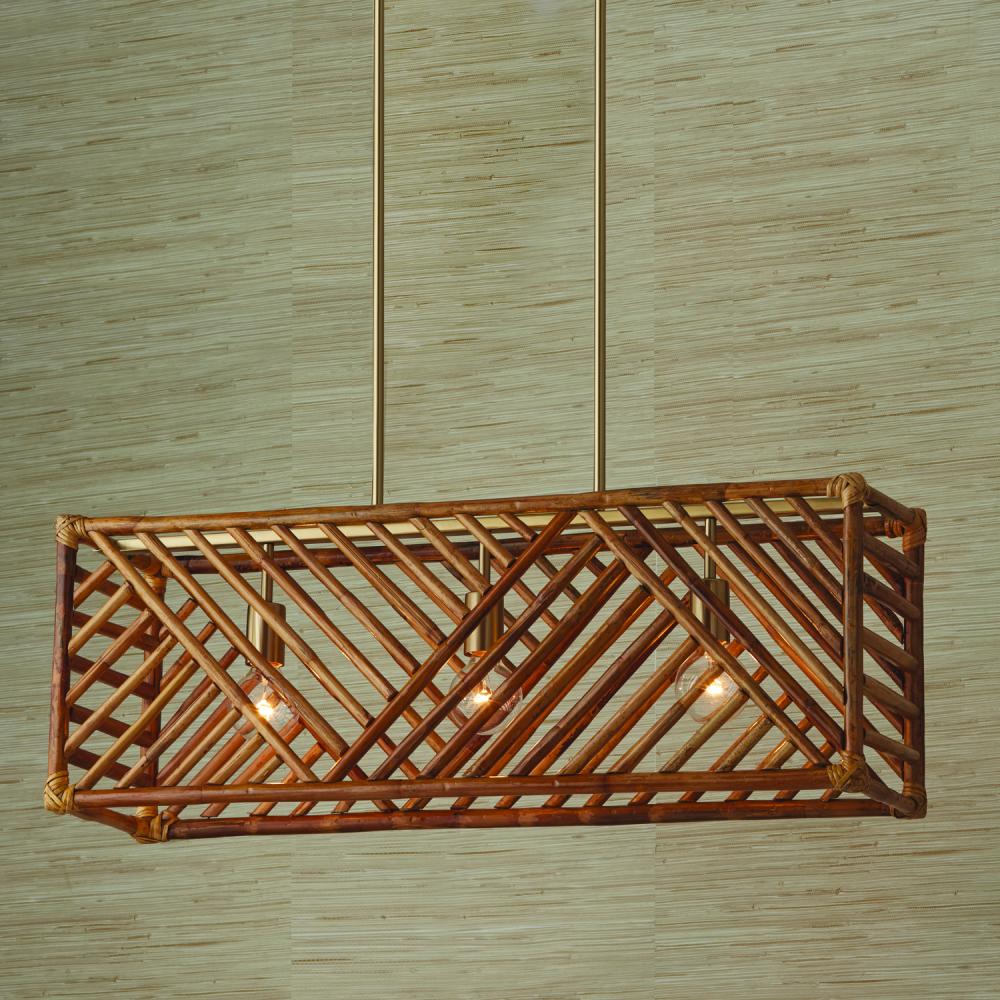 35.5"W x 12.5"H 3-Light Island in Matte Brass with Natural Bamboo