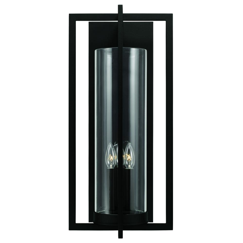 12"W x 25"H 3-Light Outdoor Wall Lantern in Black with Clear Glass Cylinder