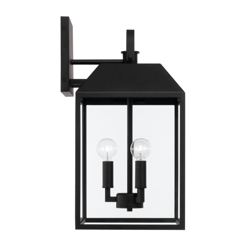 The Black finish punctuates the rectangular form, while the clear glass illuminates a warm welcome.