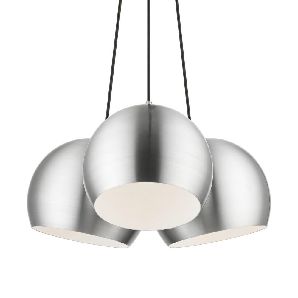 3 Light Polished Aluminum Globe Pendant