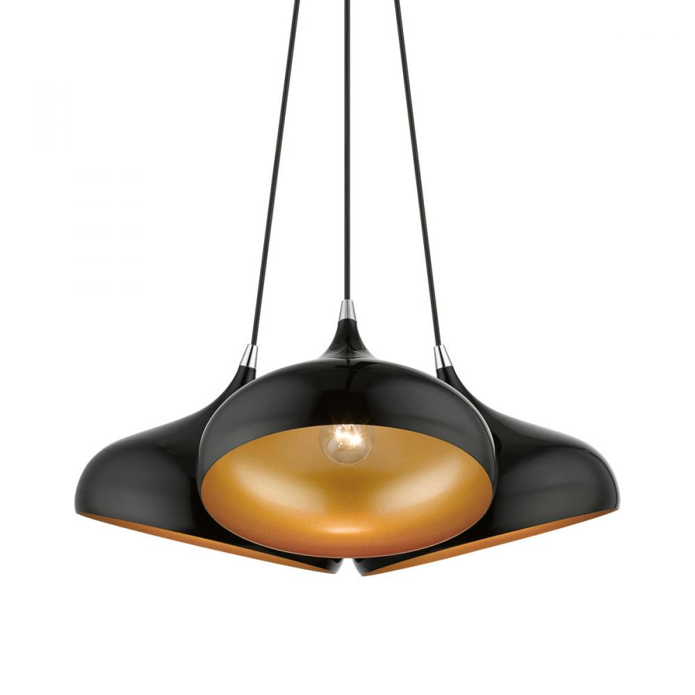 3 Light Shiny Black Cluster Pendant