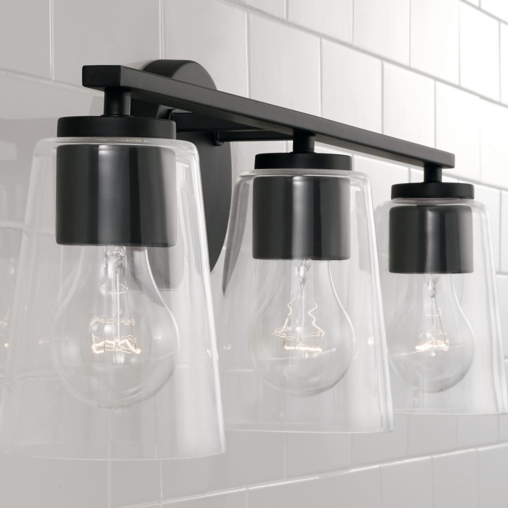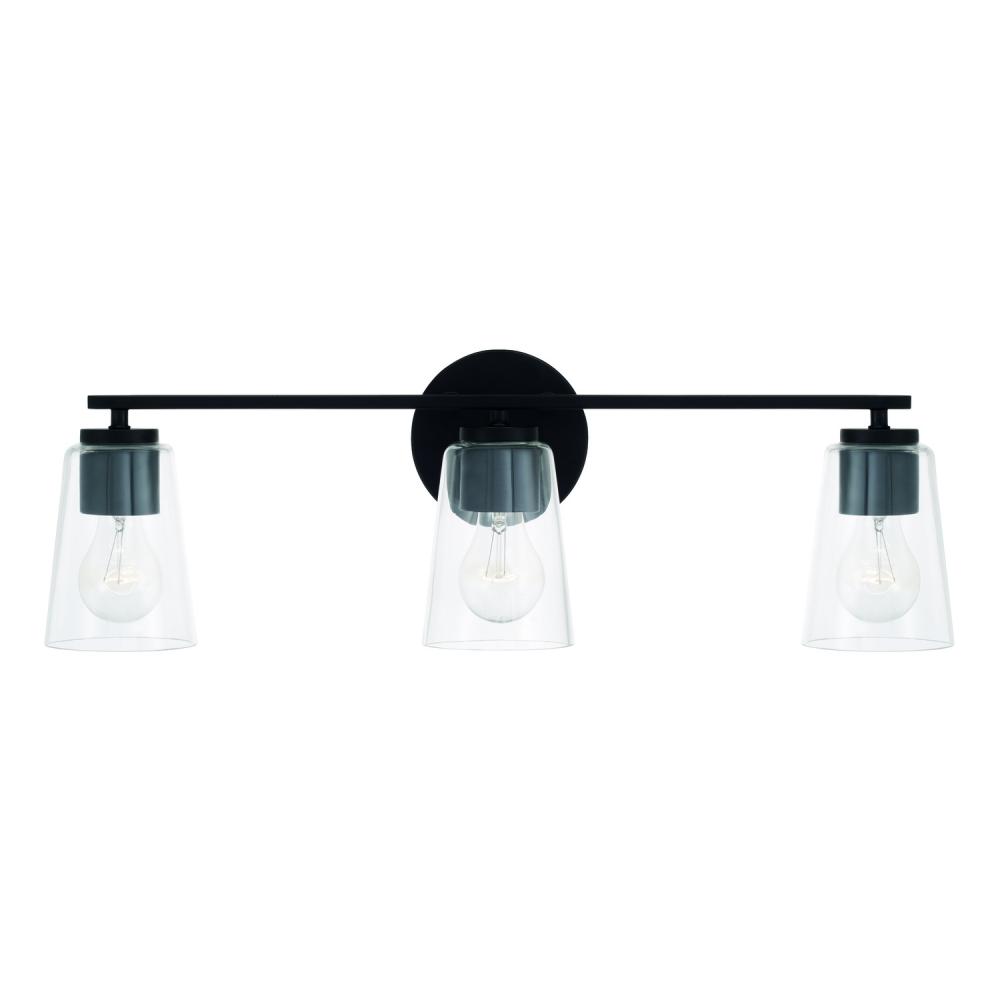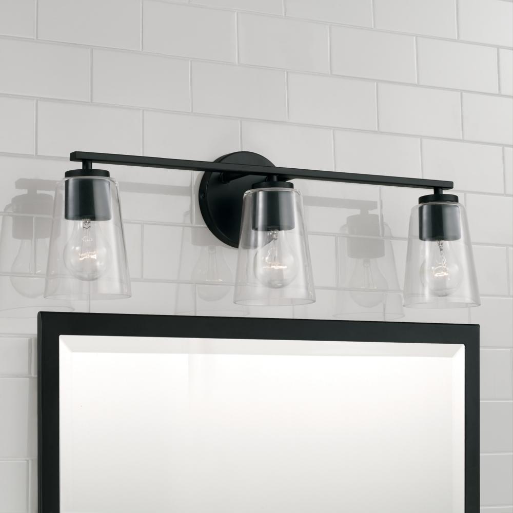 25"W x 8.25"H 3-Light Vanity in Matte Black with Clear Glass