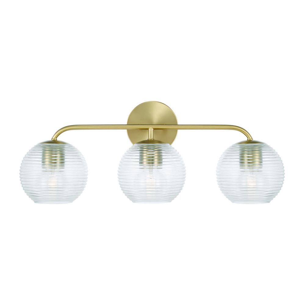 24.5"W x 9.5"H 3-Light Vanity in Matte Brass with Clear Ribbed Glass