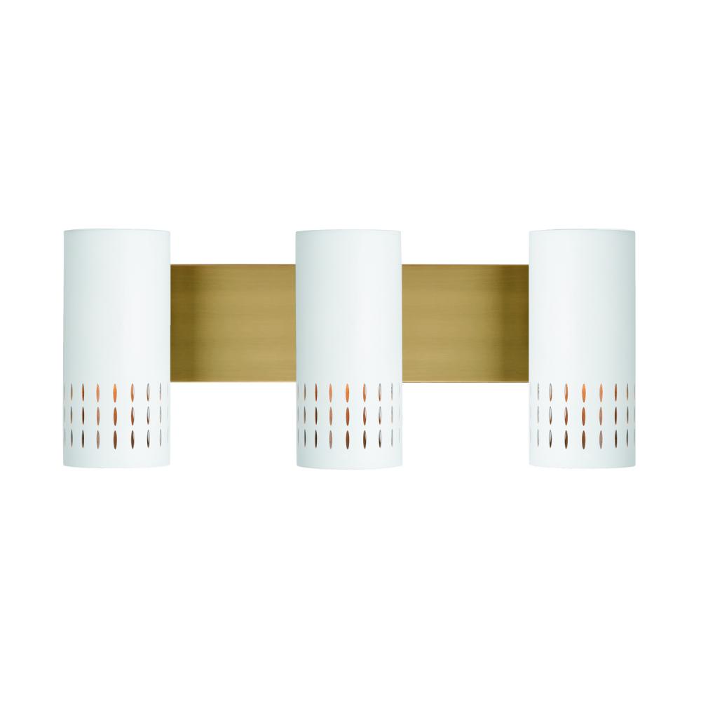 24"W x 9.5"H 3-Light Vanity in Aged Brass and White Metal Shade with Painted Aged Brass Interior