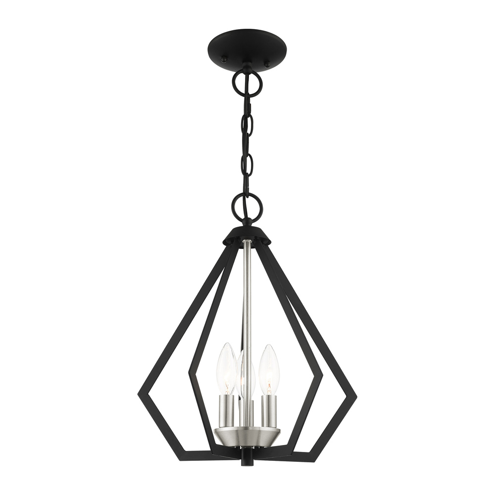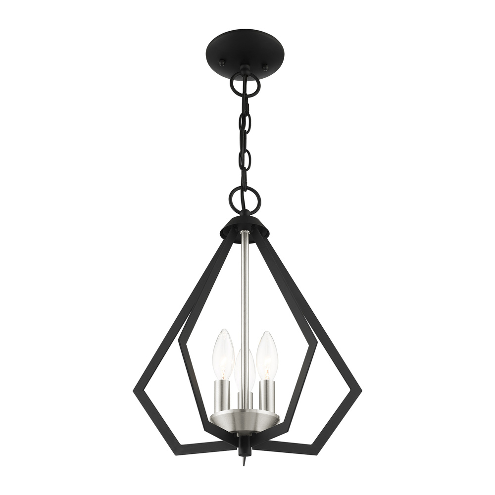 3 Light English Bronze Semi-Flush / Small Pendant with Antique Brass Finish Accents