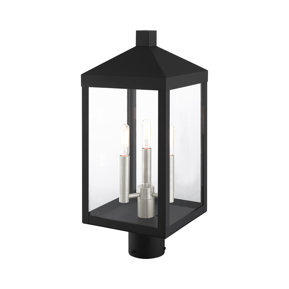 3 Light Black Outdoor Post Top Lantern
