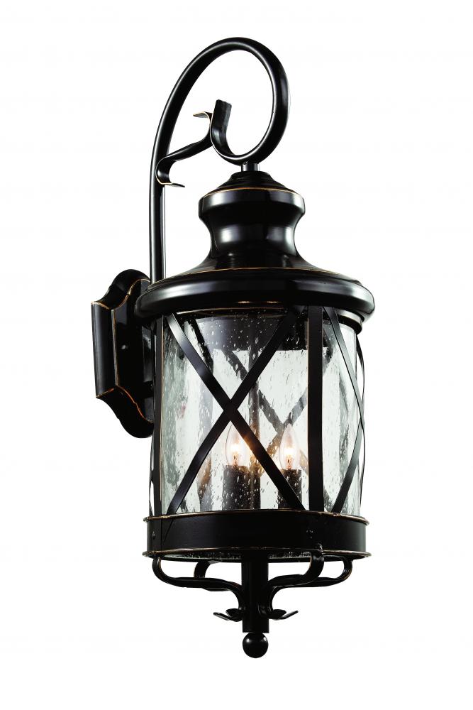 The Chandler Collection exhibits a unique wall lantern that is perfect for adding supplemental lighting to any outdoor living space. The Traditional tone allows the lantern to stand out as both functional and decorative as it lights up any outdoor setting. The Chandler 23.25" Wall Lantern is a three-light fixture with a clear Seeded Glass shade that creates soft reflections across the landscape. A cross bar trim over the shade adds rustic appeal. A decorative wall bracket with scroll arm suspends this classic coach style lantern. The Chandler Collection is finished in Rubbed Oil Bronze.