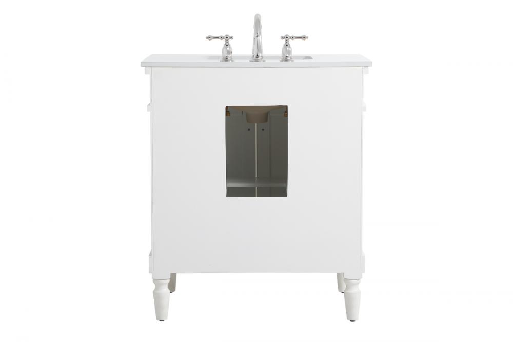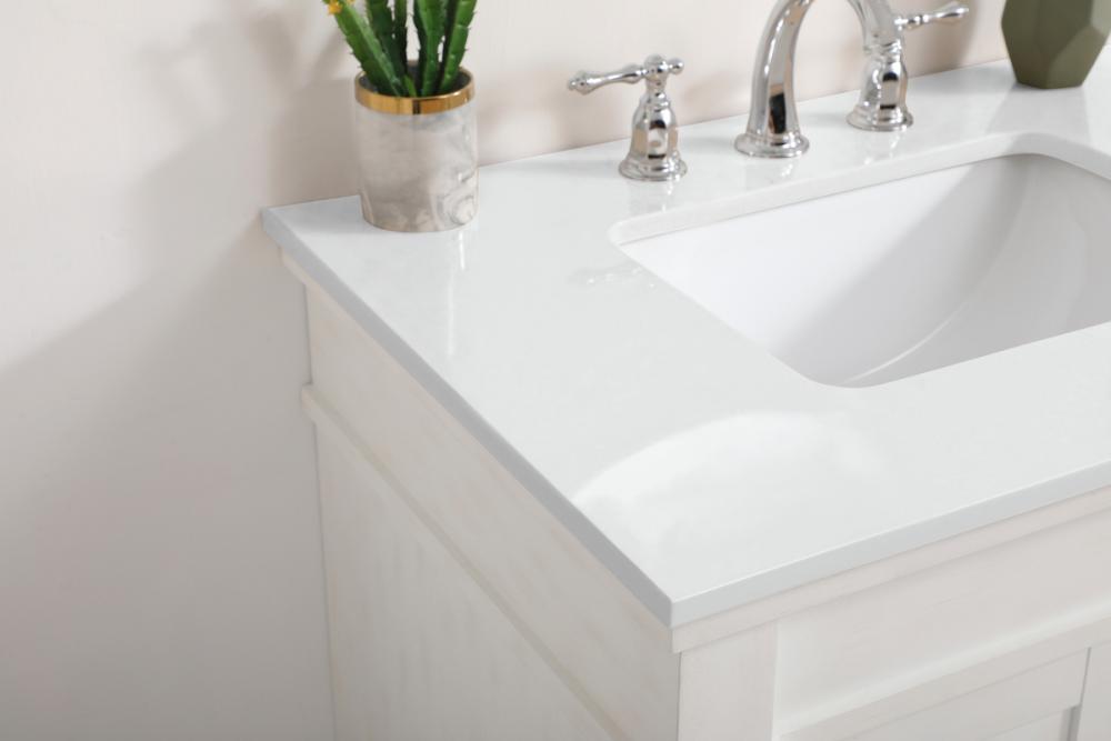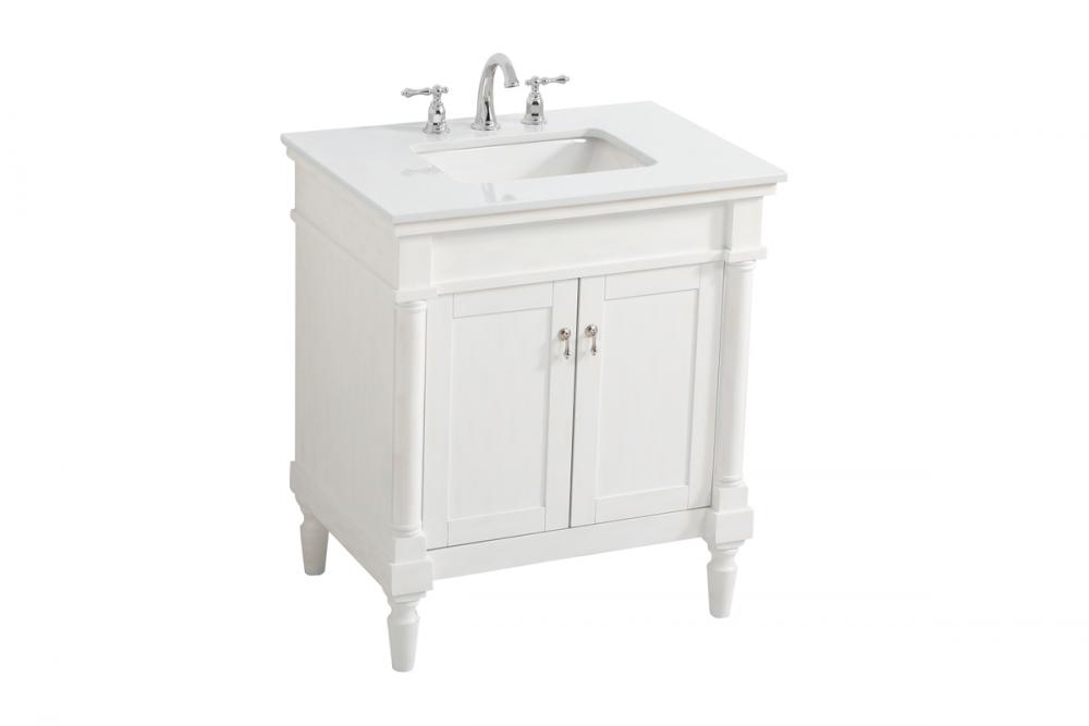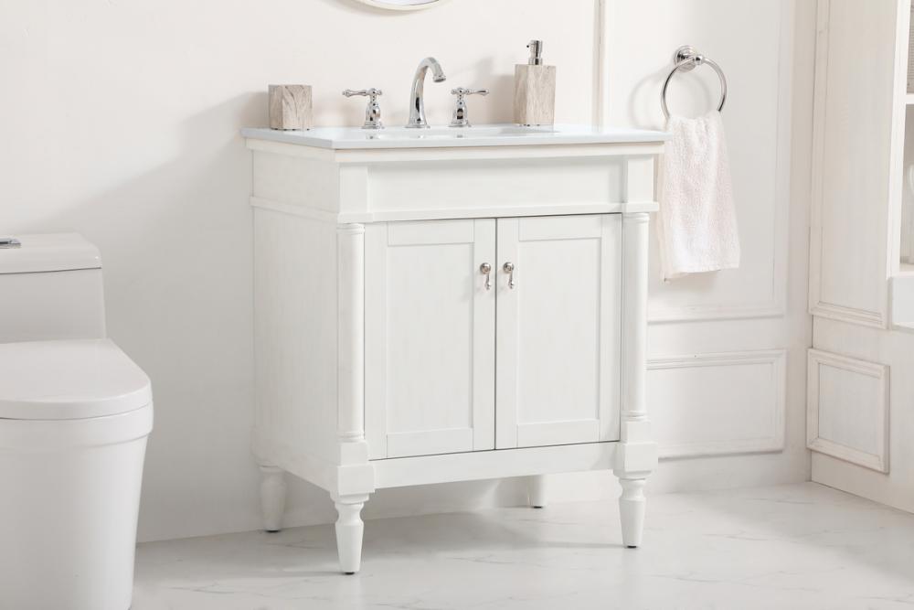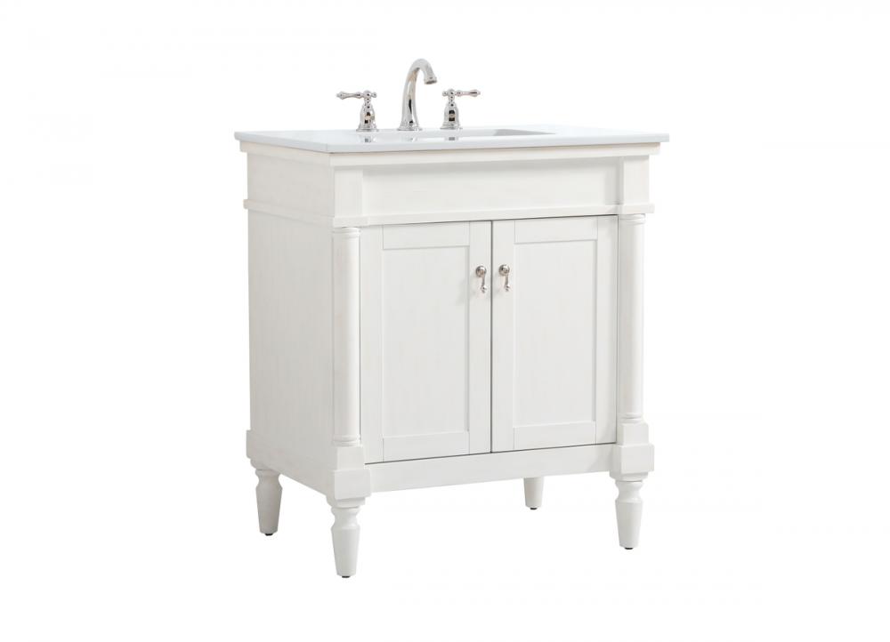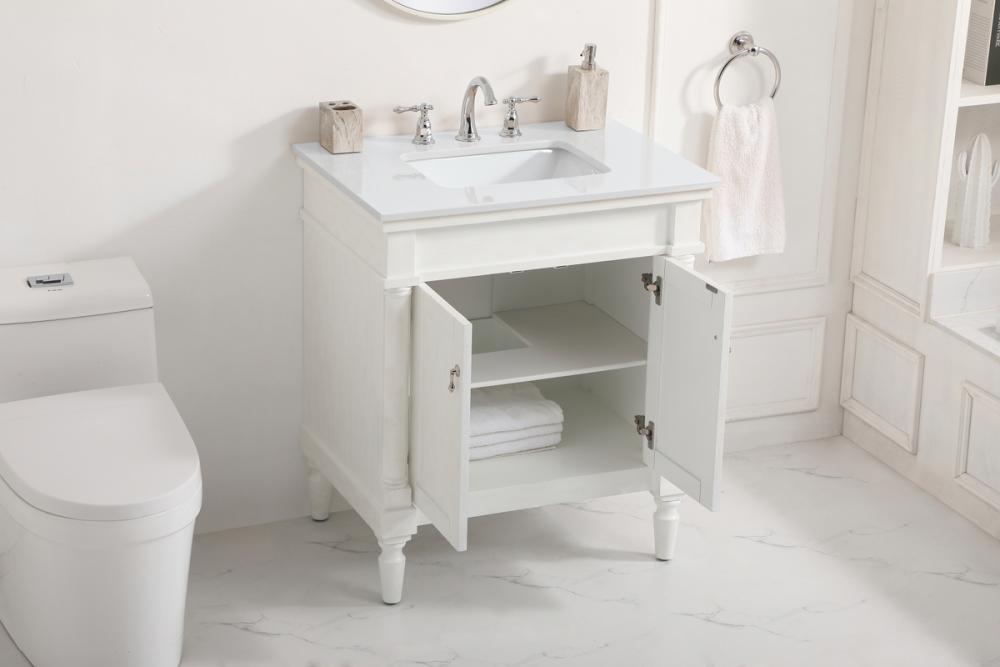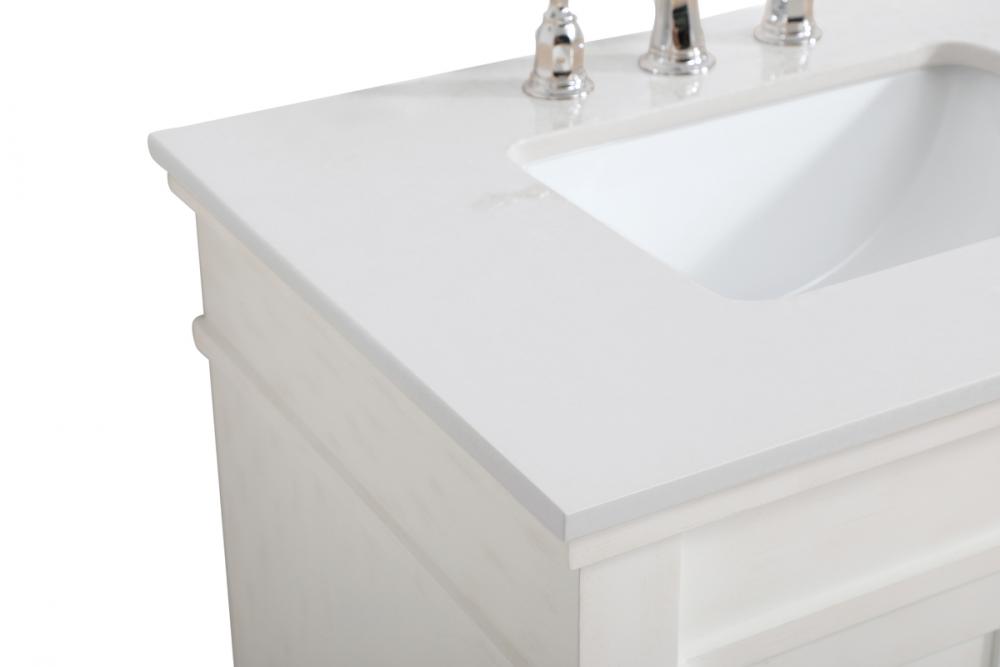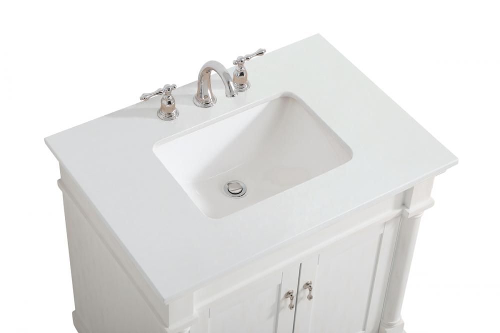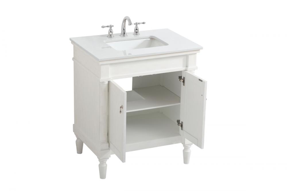30 inch Single Bathroom vanity in Antique White with ivory white engineered marble