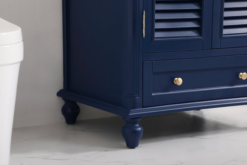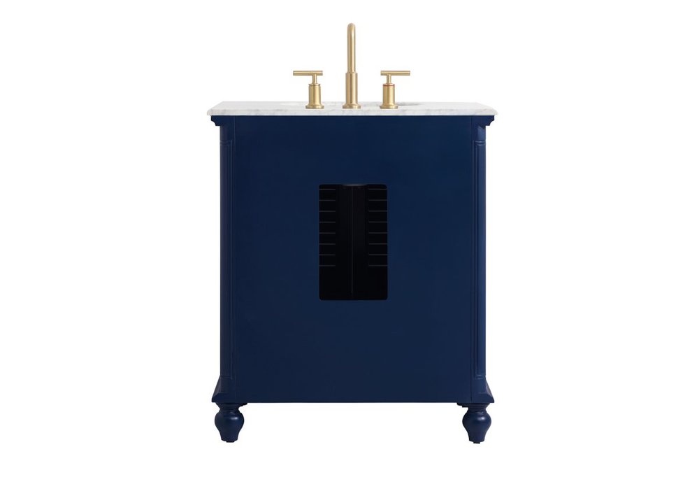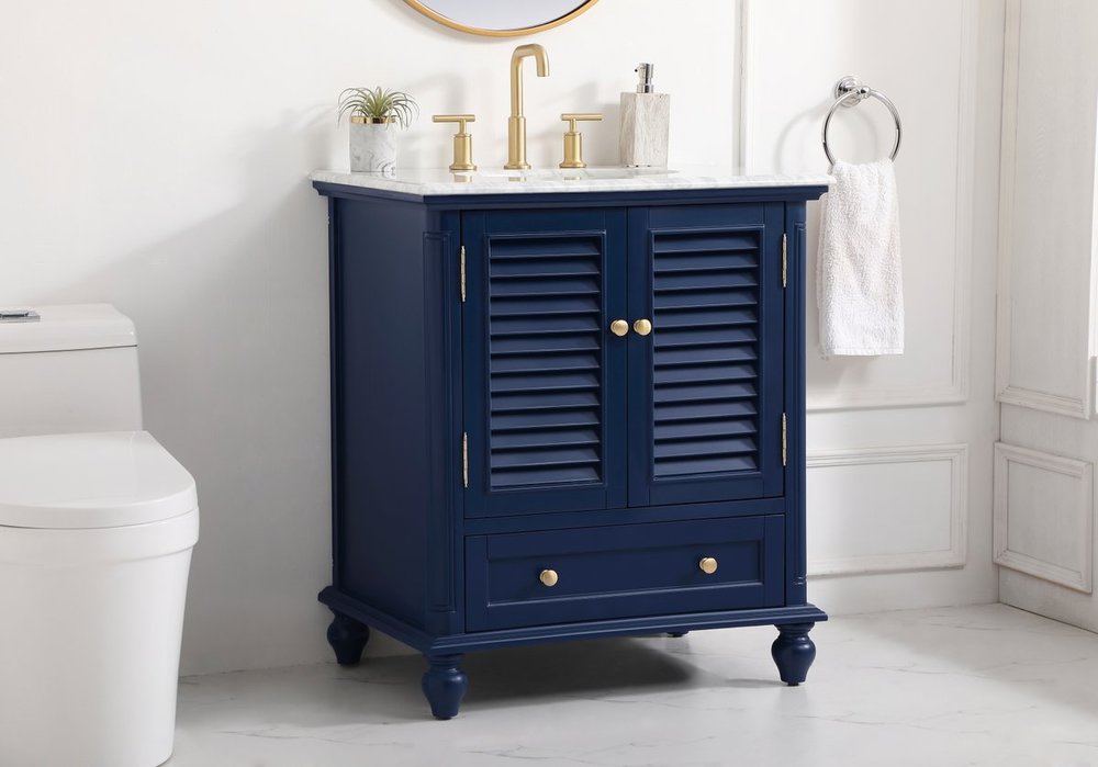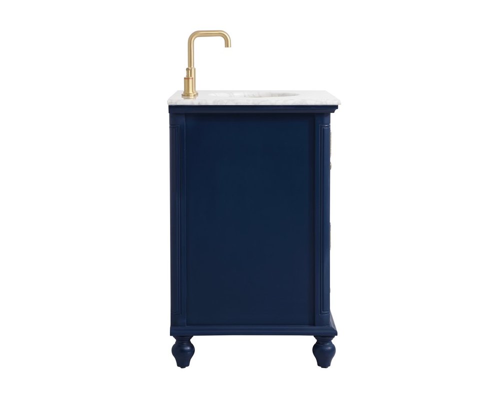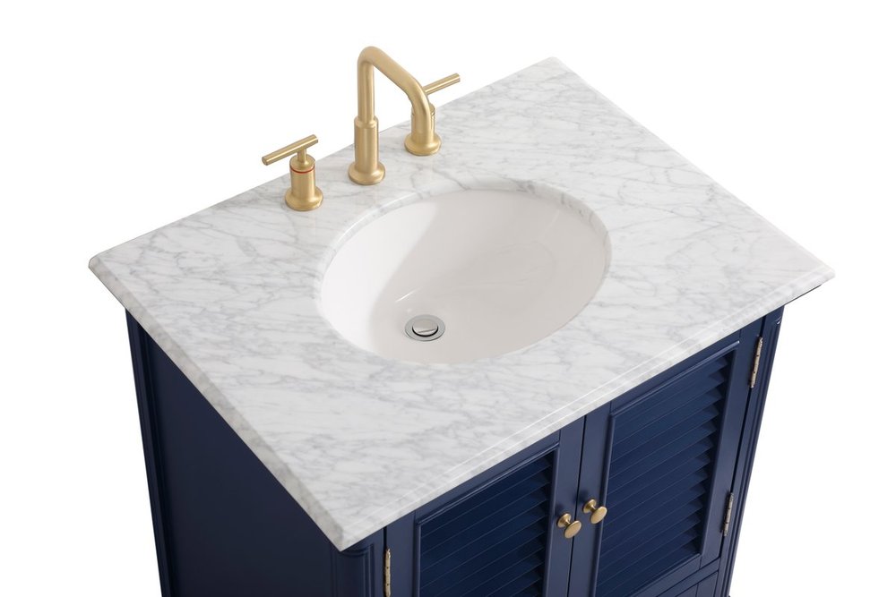 A small space doesn't mean you have to settle for less. The Rhodes collection compact vanity will add lovely sophistication and complement any small bathroom or powder room, while utilizing its charm and function to provide you with ample storage spaces. Metal round knobs gently adorn the shuttered cabinet door and drawer at the base, allowing for you to store away your bathroom essentials. The Carrara white marble countertop, porcelain undermount sink, dignified subtle engravings on the side edges, and rounded legs all come together to create contemporary beauty. Work with your space, and design a beautiful room, no matter the size.