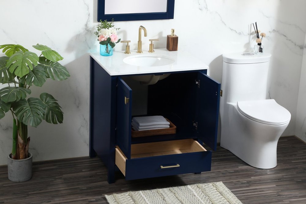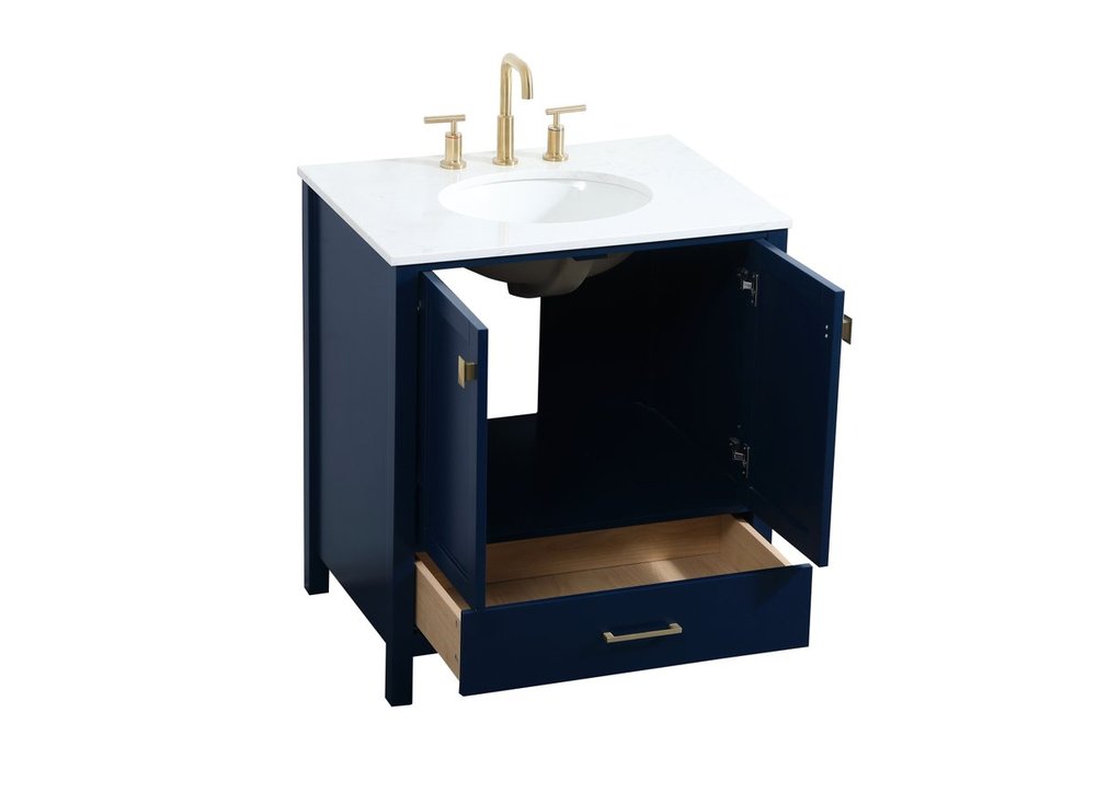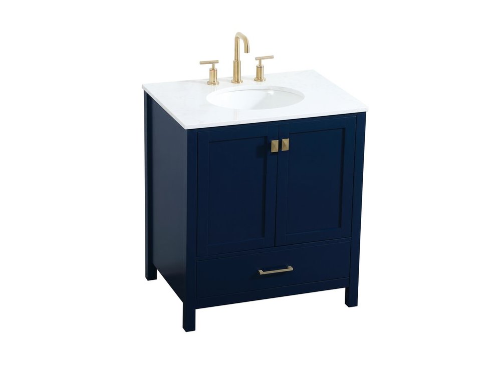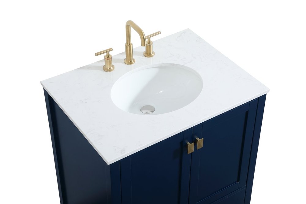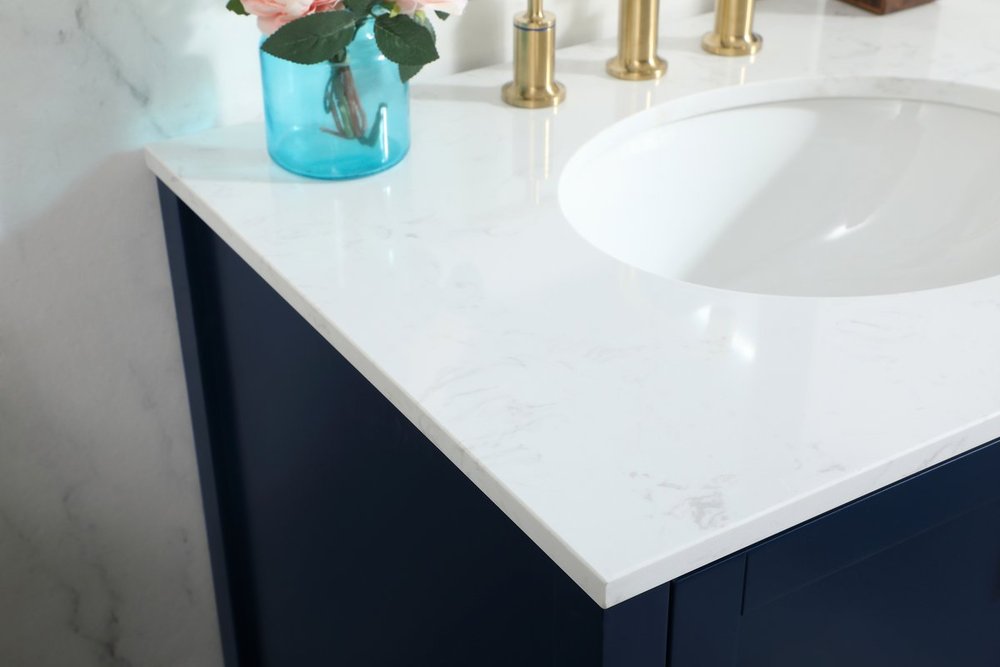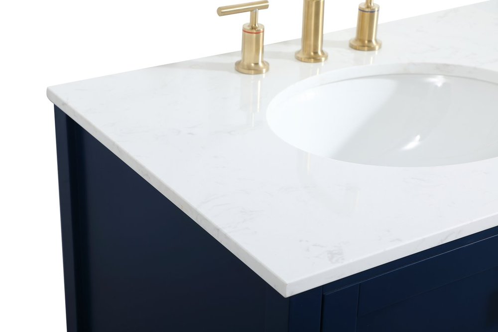 Comes with an undermount porcelain sink and a durable calacatta engineered marble stone top