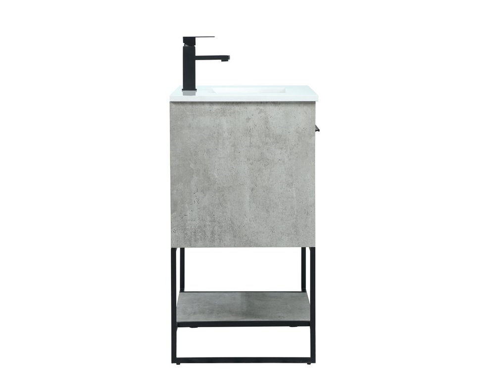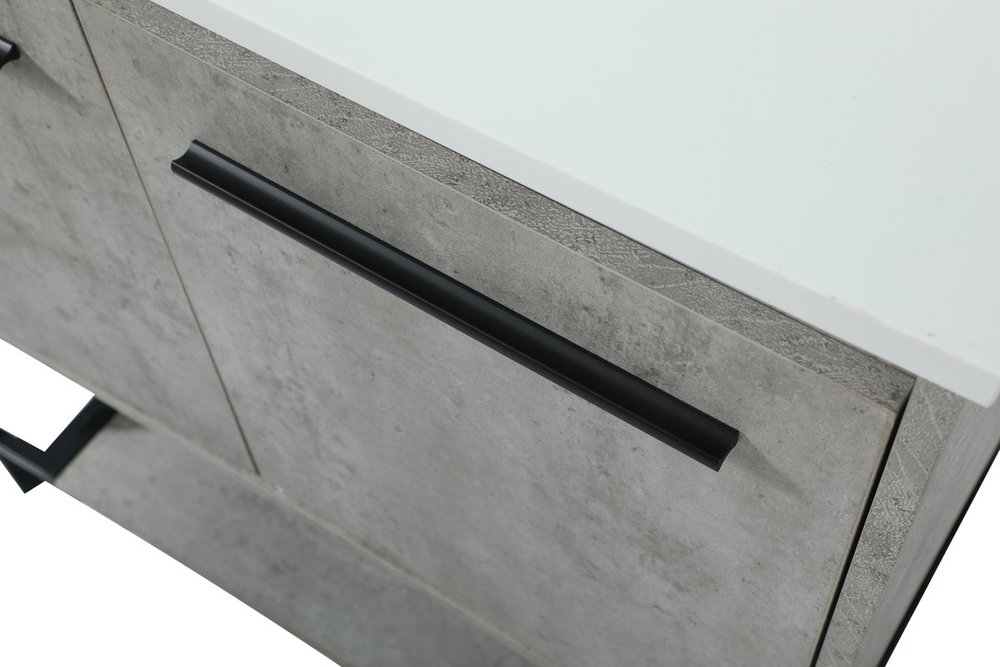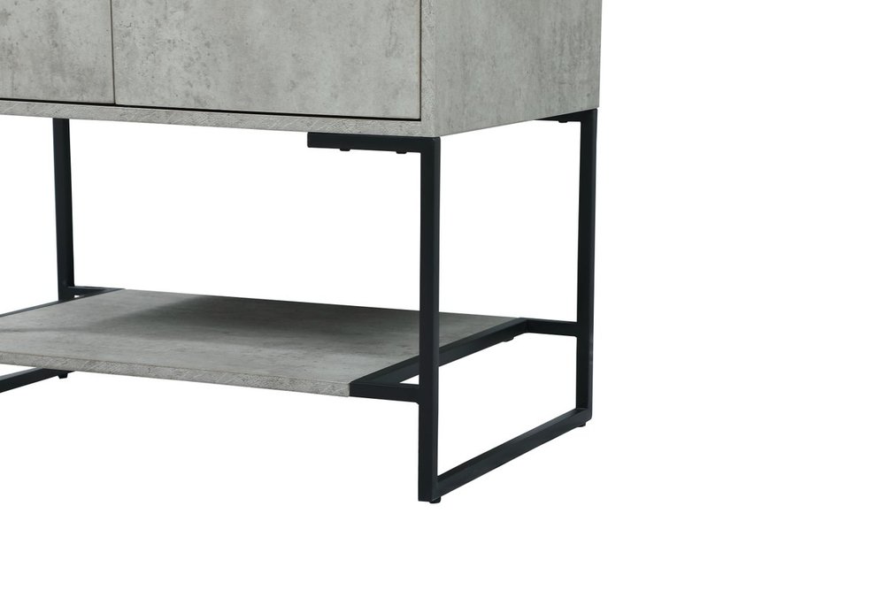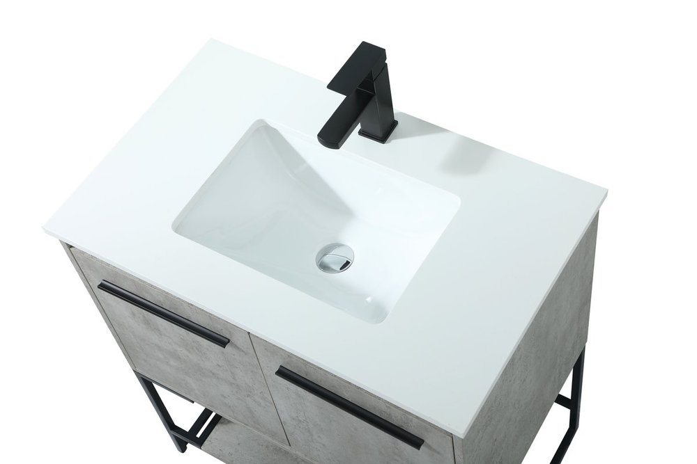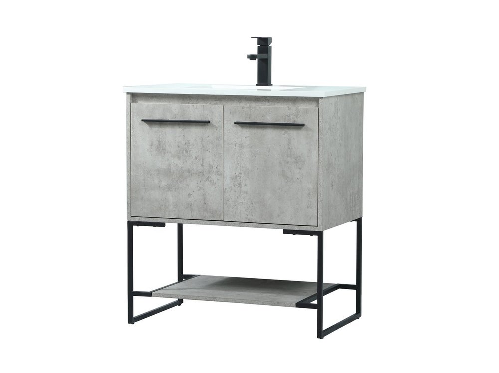 Live in modern comfort with this 30" concrete grey finish vanity. Dressed in a concrete grey and sleek black metal hardware, its contemporary style will have your bathroom or powder room elevated in industrial sophistication. The open shelf at the base and two doors reveal ample storage space for your bathroom essentials and miscellany. Clean lines create its own visual interest, adding trendy looks to your already chic room.