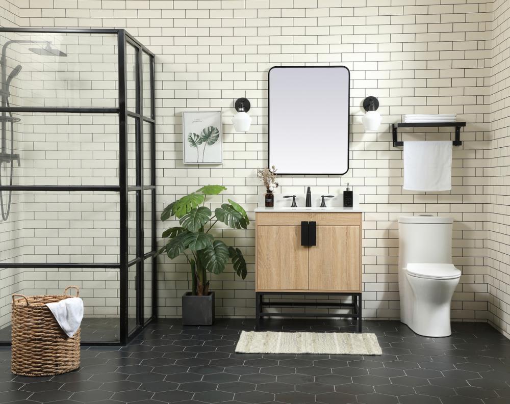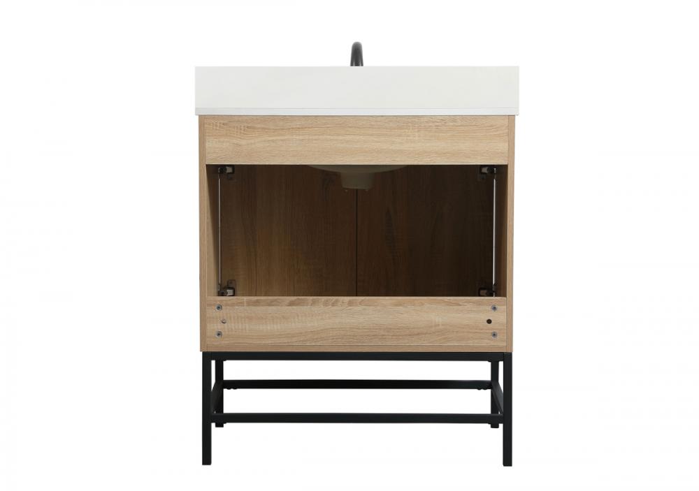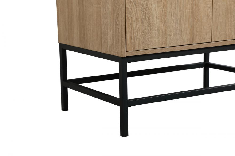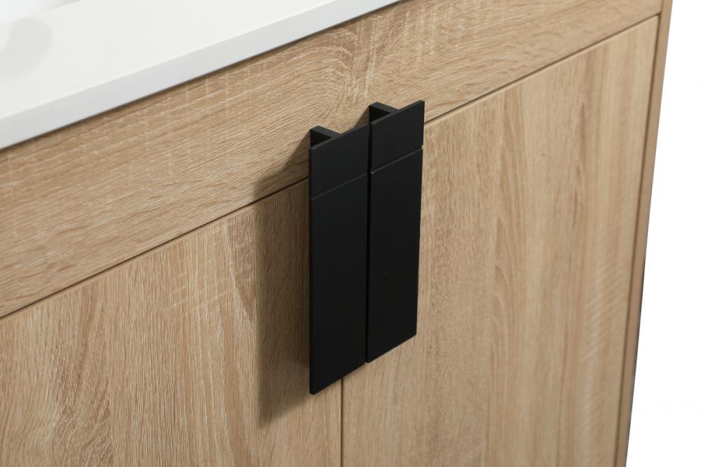 This vanity is a sleek-looking piece of bathroom furniture that is easy to incorporate into your design scheme. The cabinet features a smooth door panel with an oversized steel handle and soft close hinges provide ample room for accessories. Constructed of engineered wood, the powder-coated metal rod legs are an urban industrial look that we love. Minor assembly of the metal legs needed to get this vanity up and running. Comes with a matching backsplash to complete the look and protects your wall.