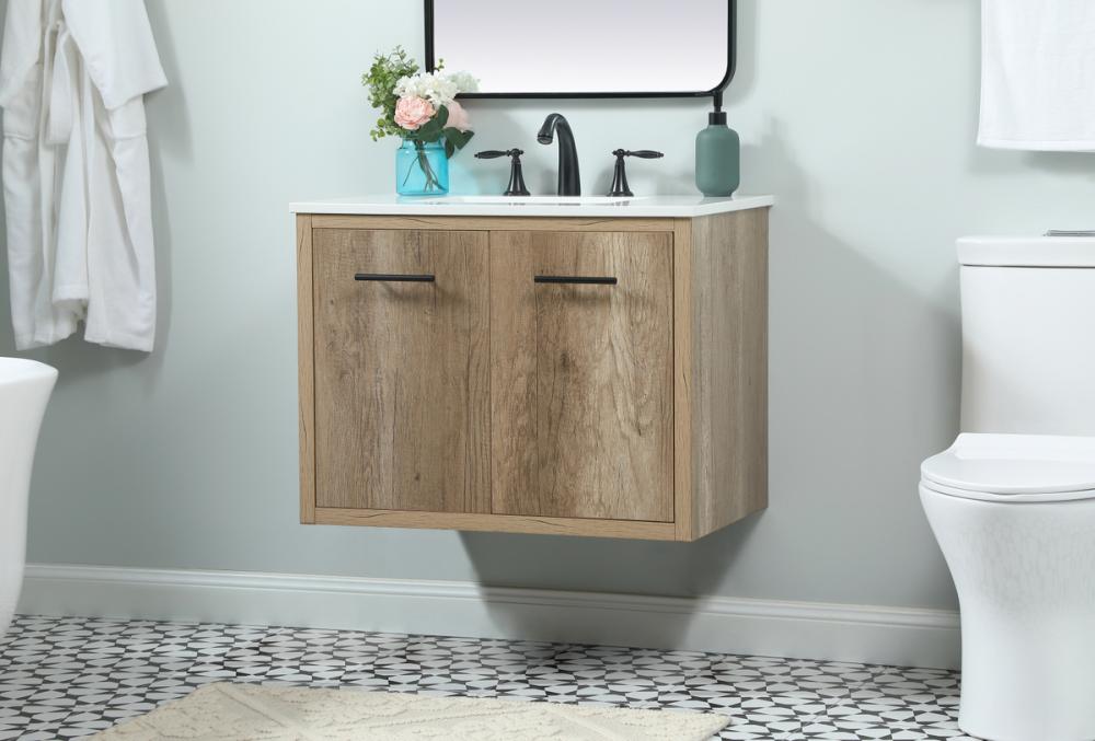 Vanity can be wall mounted without the solid wood legs or install as a freestanding unit