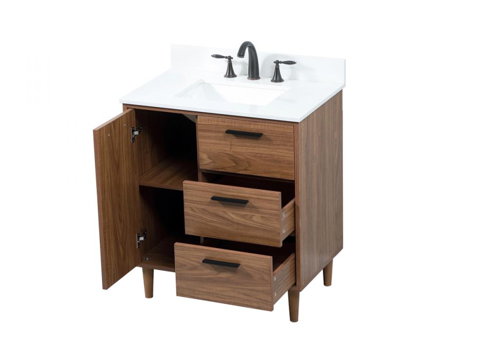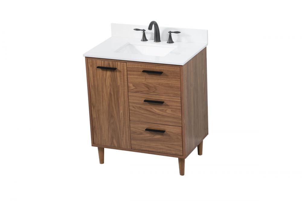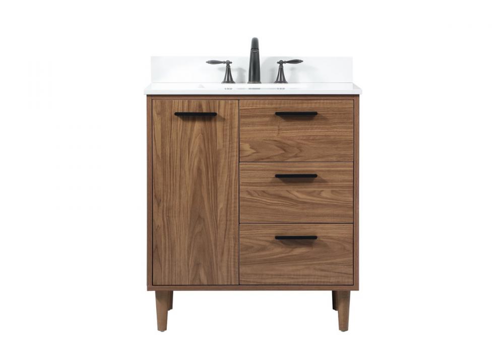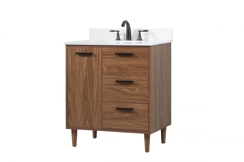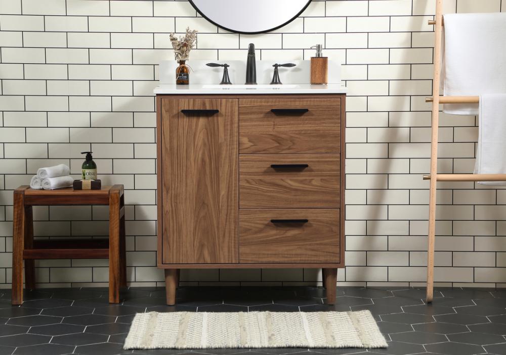 30 inch Single bathroom vanity in walnut brown with backsplash