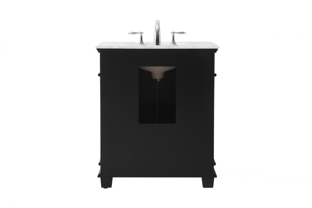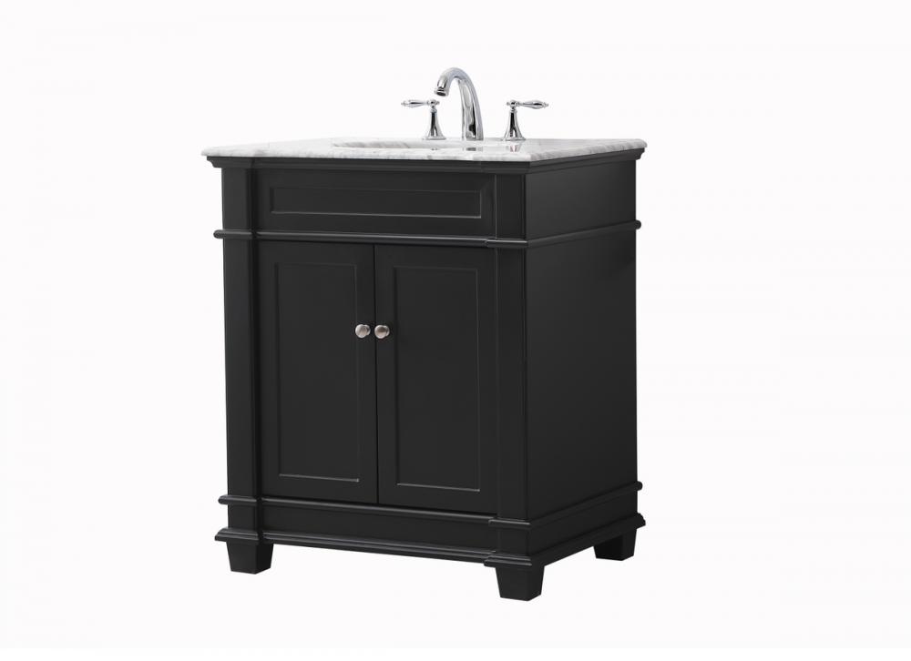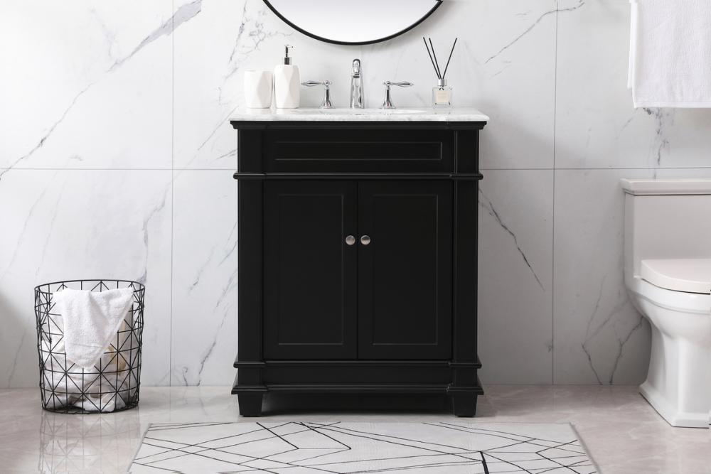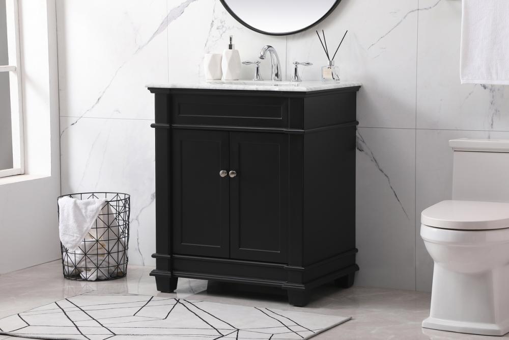 The Wesley Collection vanity cabinet will bring a settle pop of color into your bathroom. The flattering finish is a sophisticated color which creates a calming atmosphere in the room. The brushed nickel knobs bring a vibrant touch to balance the vanity. With the detailed engravings, the cabinet catches eyes with its beautiful lining work. Open the cabinet doors to store what you desire and make use of the spacious area. To top it off, the Carrara white marble adds a luxury and modern finish to the countertop.