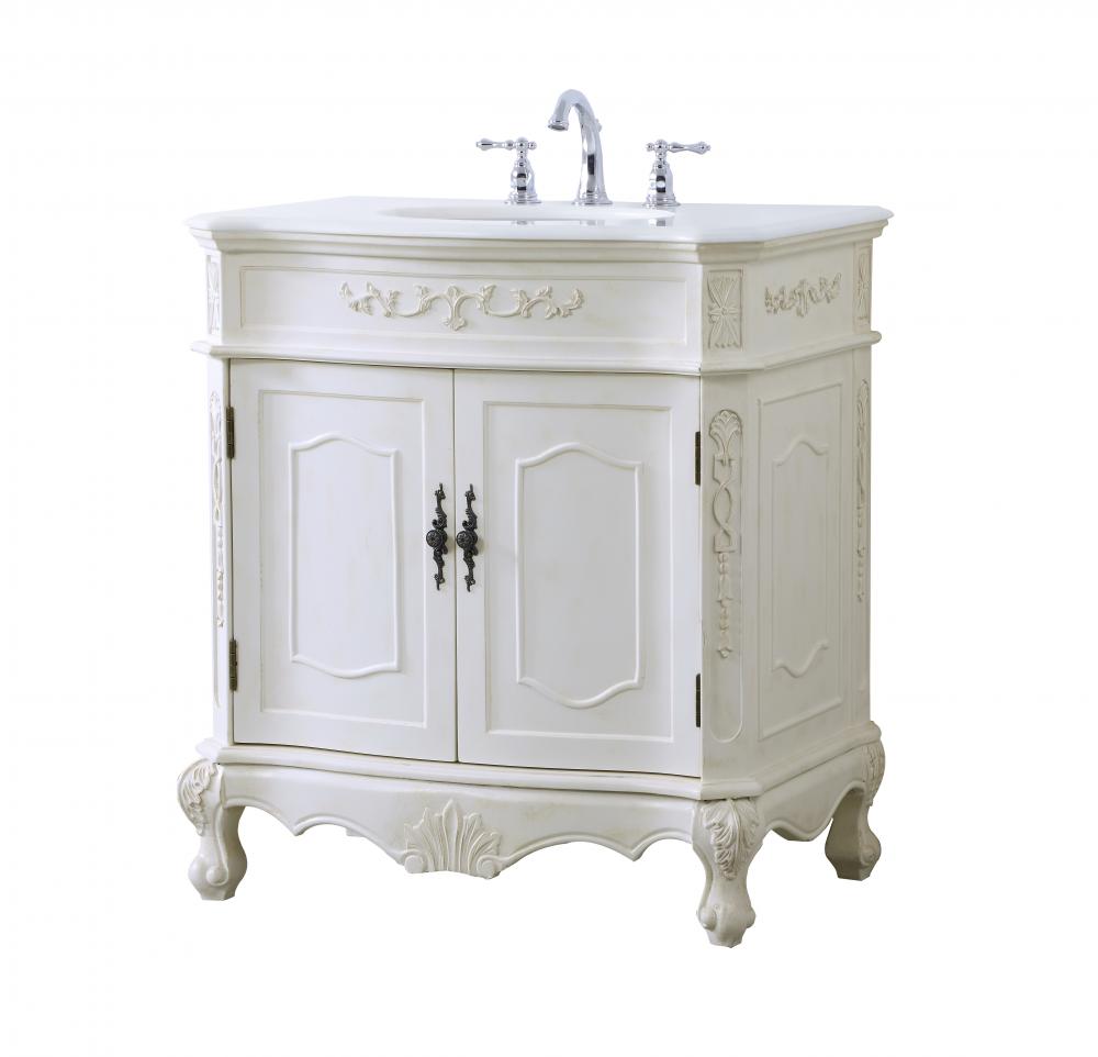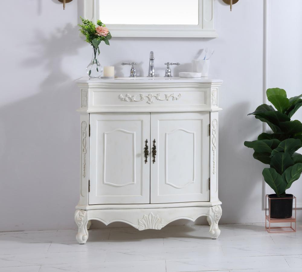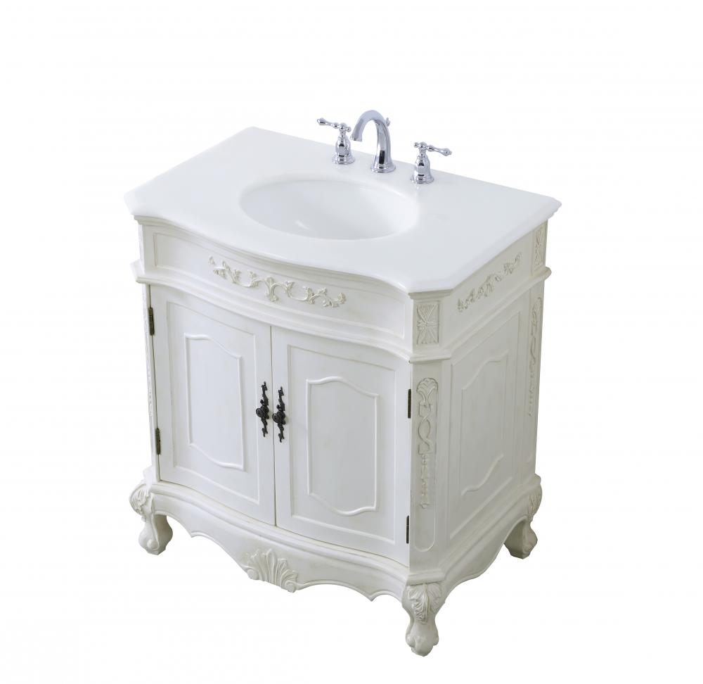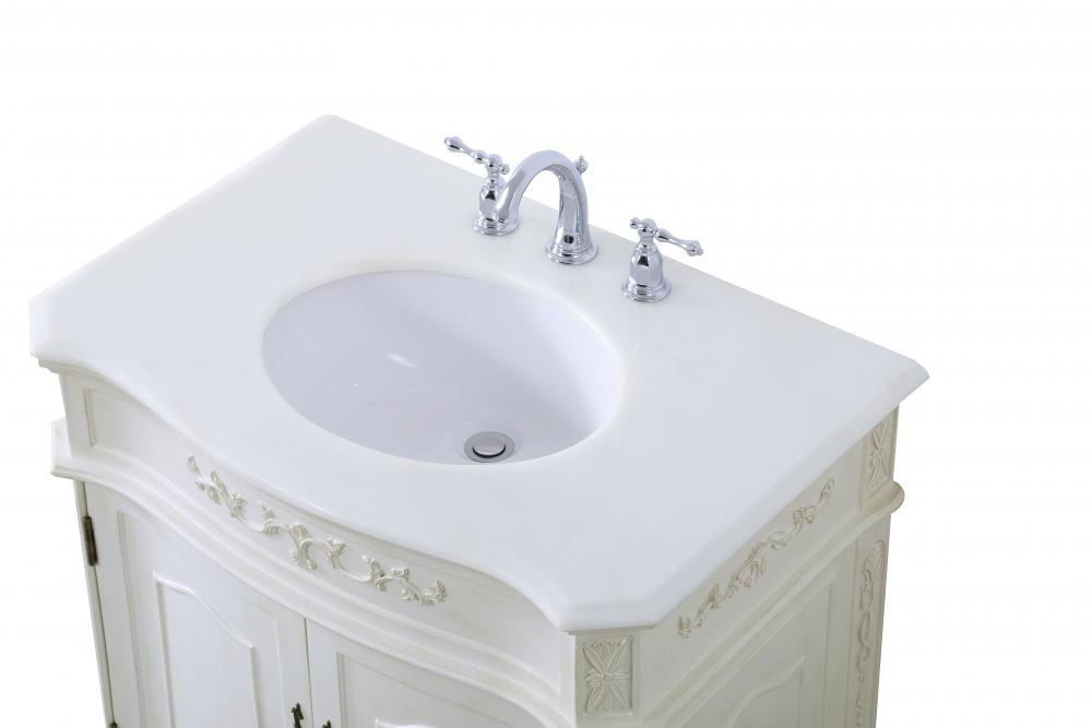 32 inch Single Bathroom vanity in antique white with ivory white engineered marble