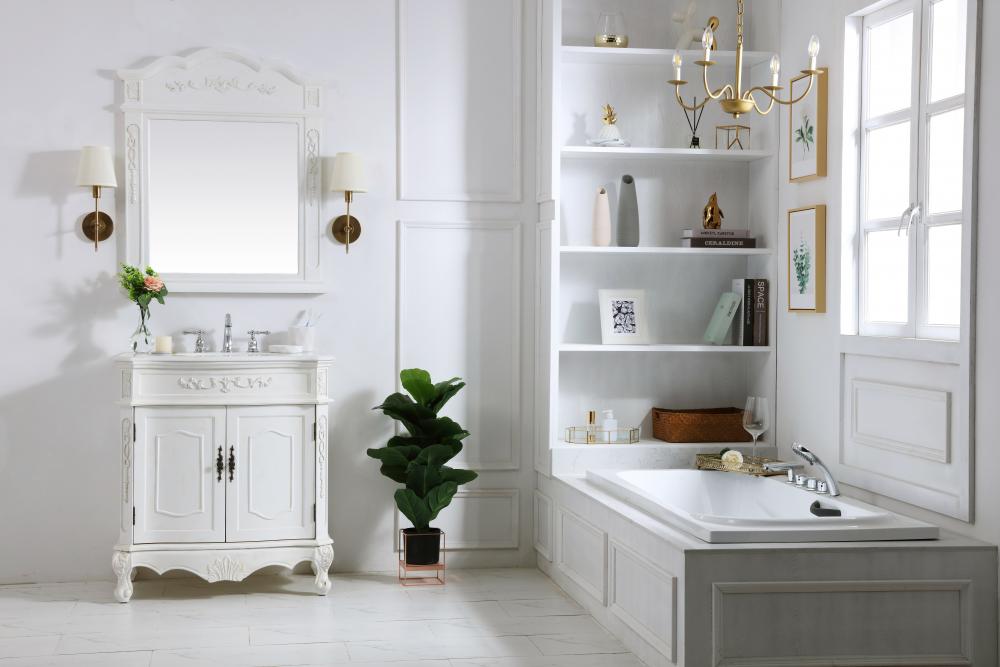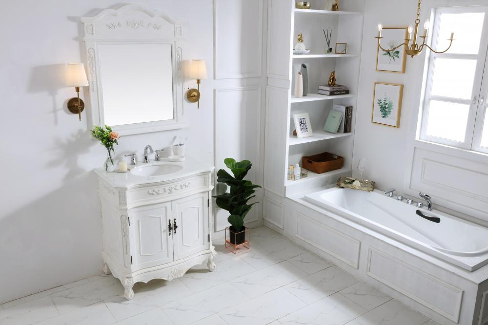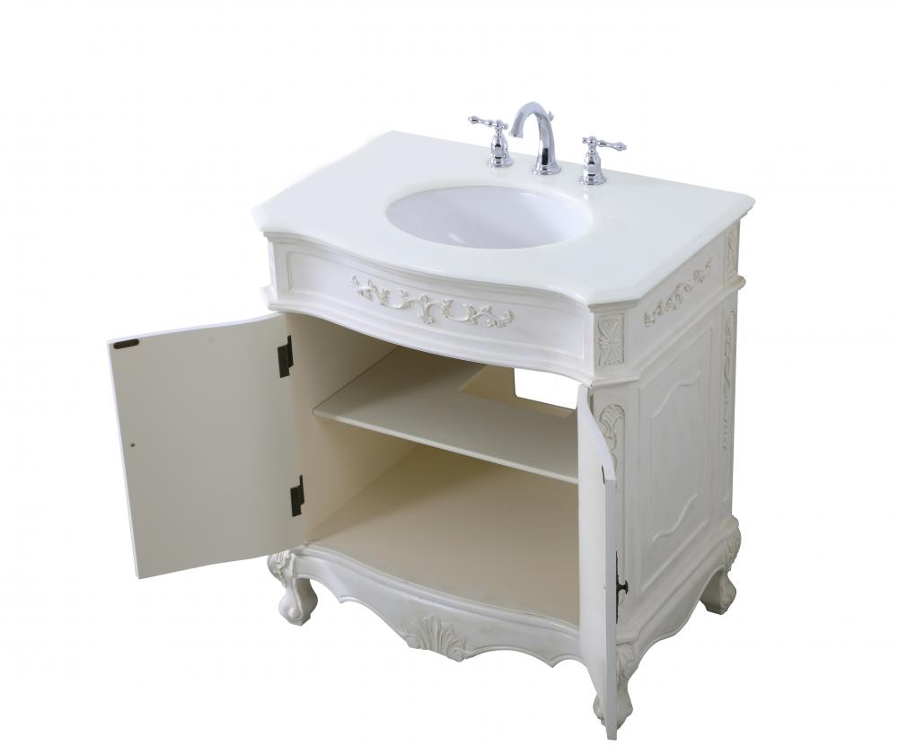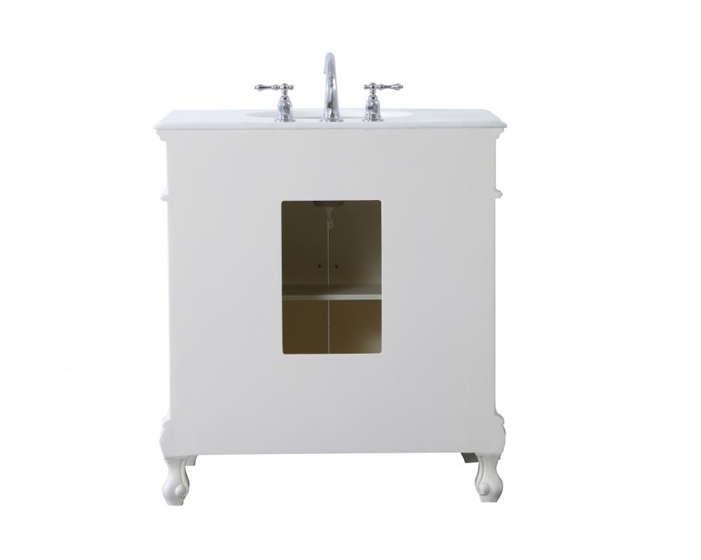 32 inch Single Bathroom vanity in antique white with ivory white engineered marble